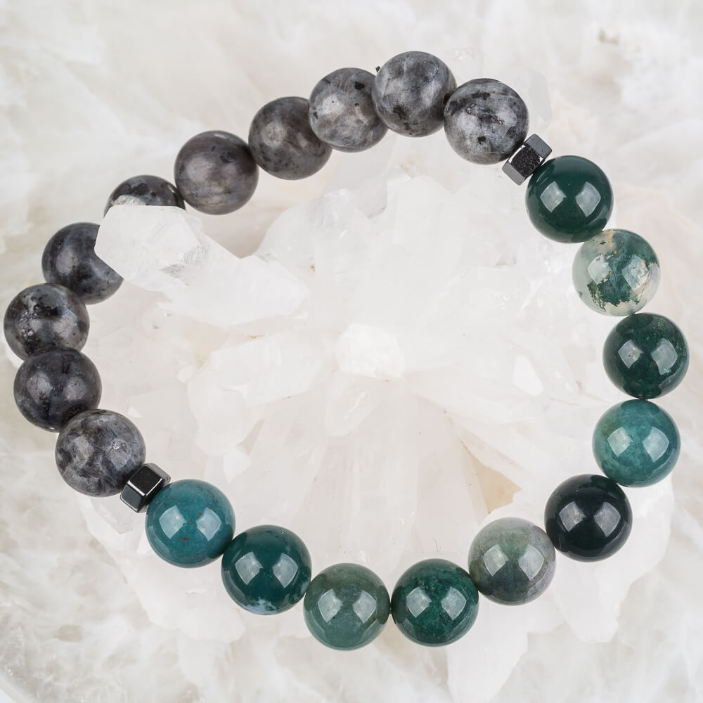 Браслет из Агата мохового и Лабрадора "Лаврикит"