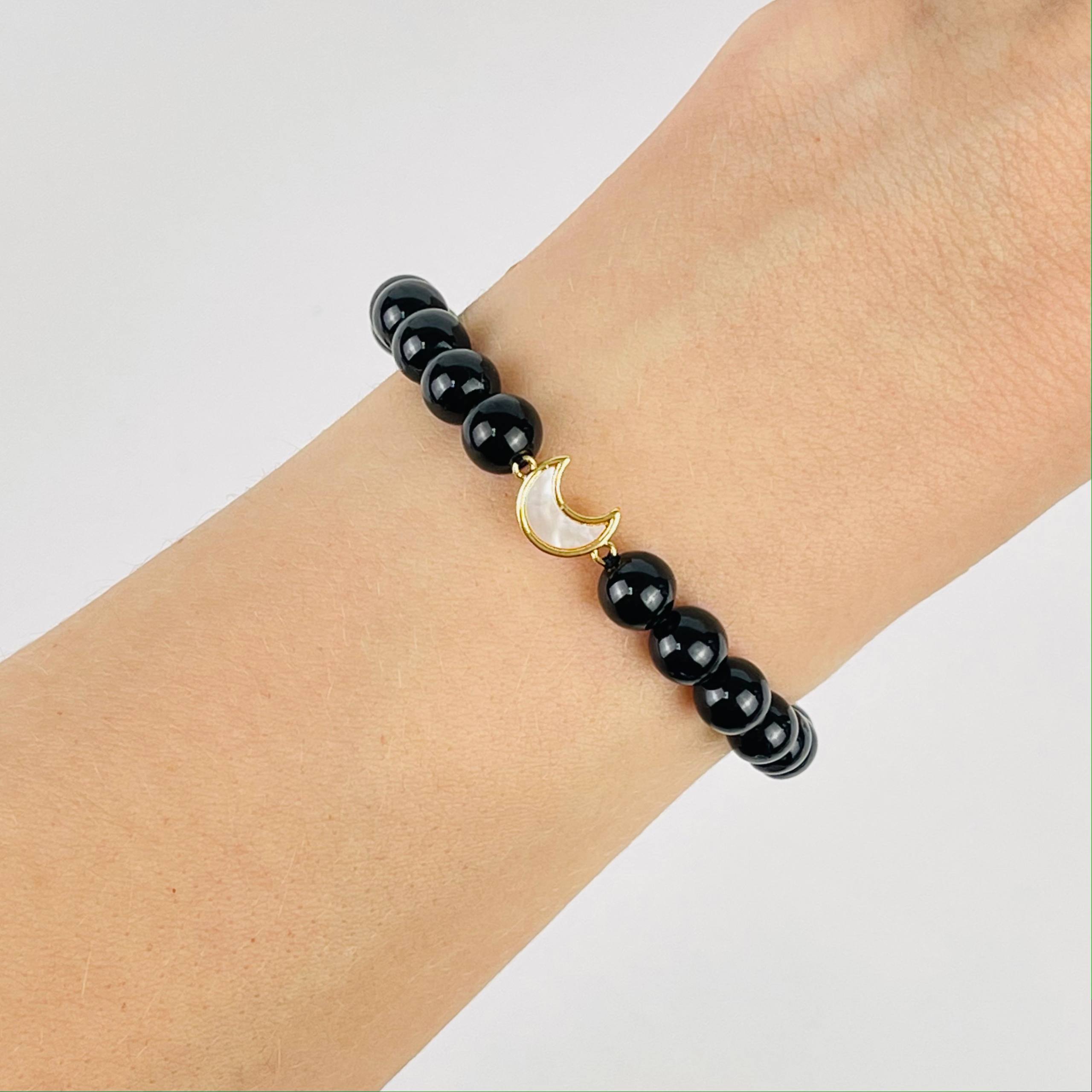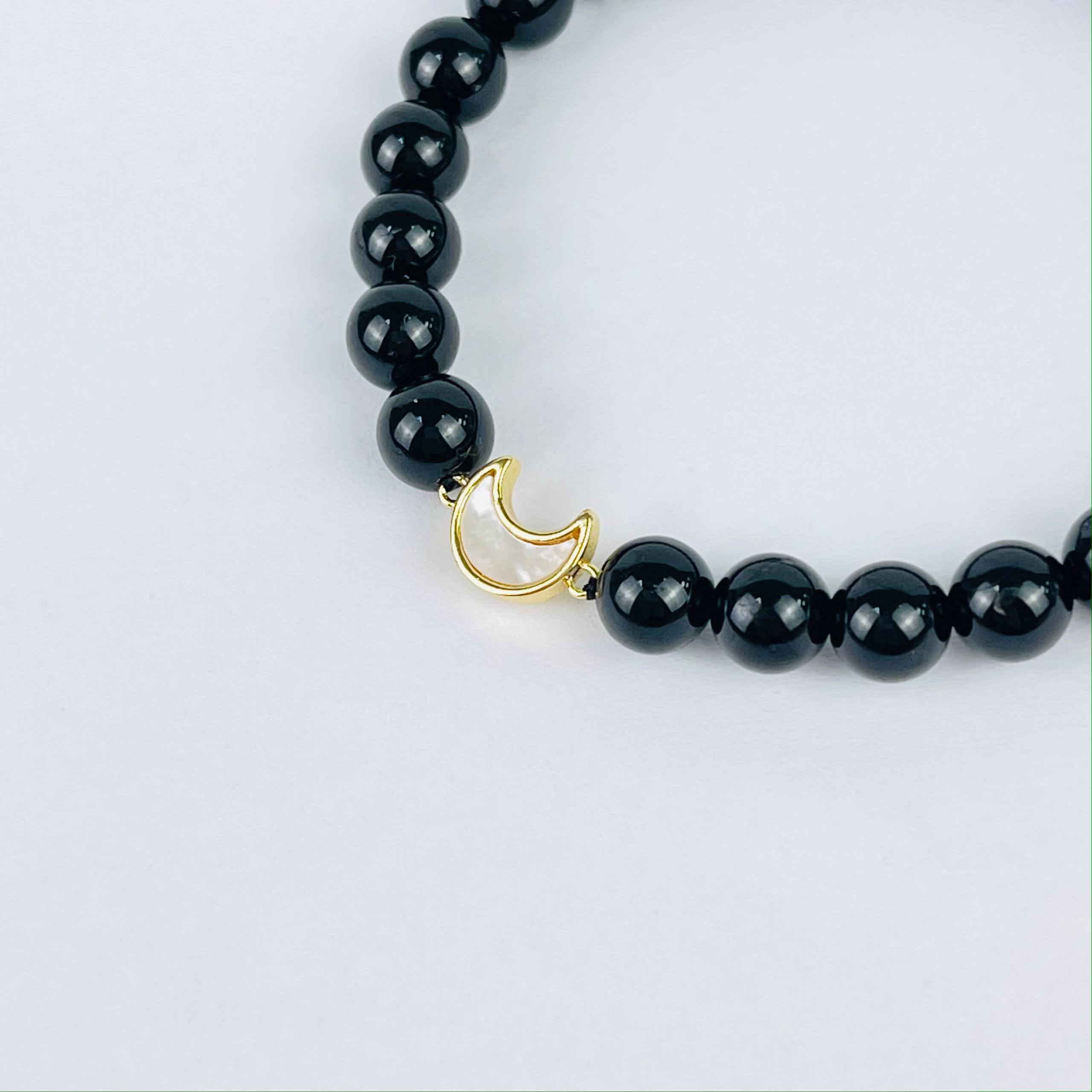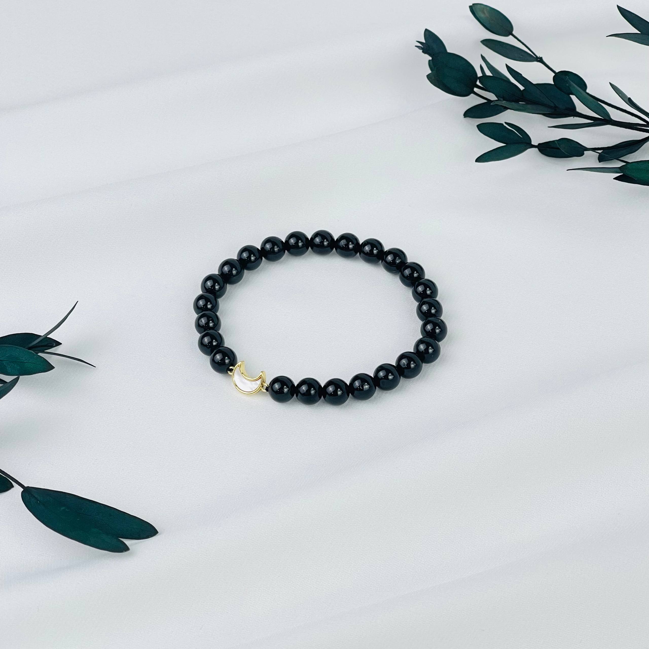 Браслет из черного Турмалина (Шерл) с перламутровой вставкой