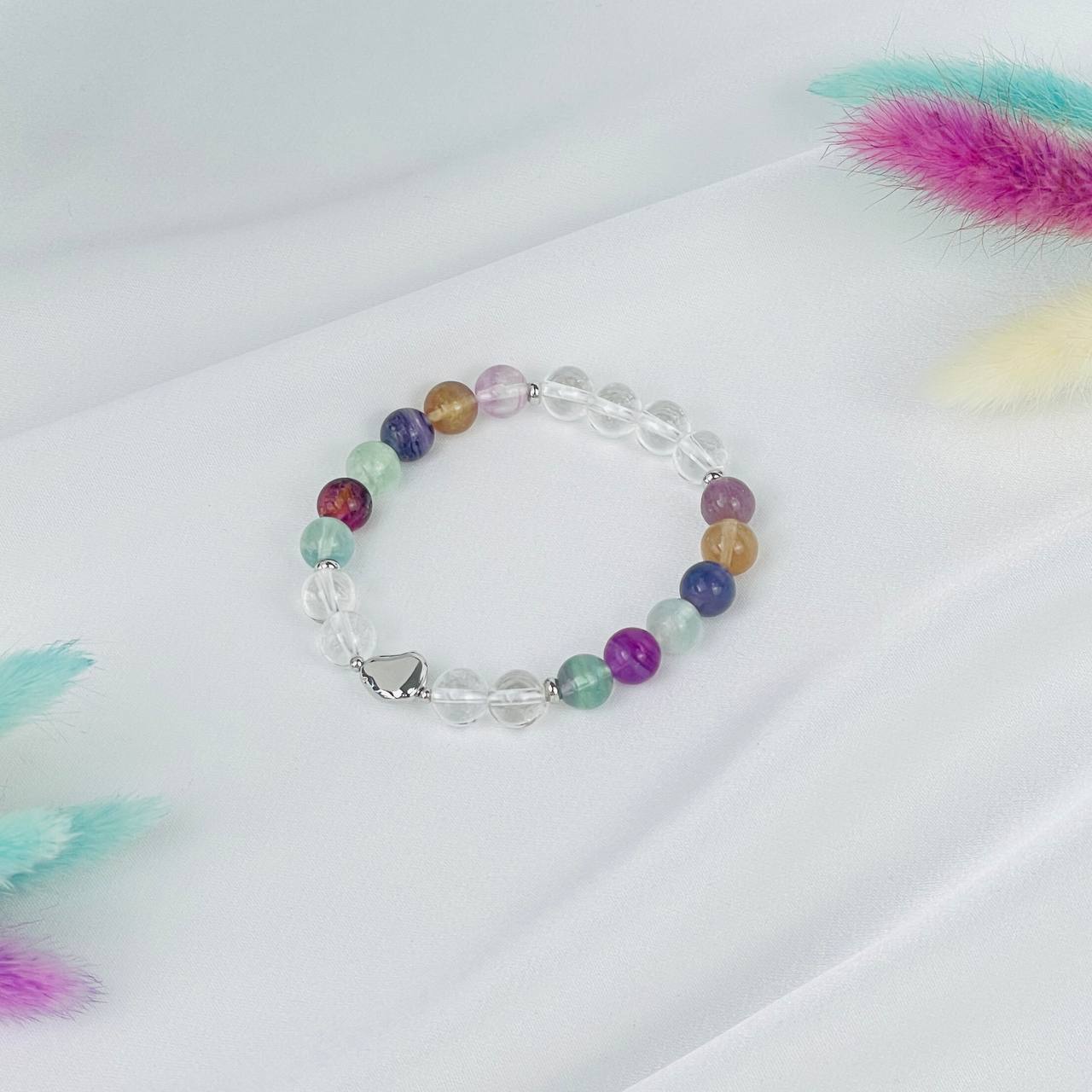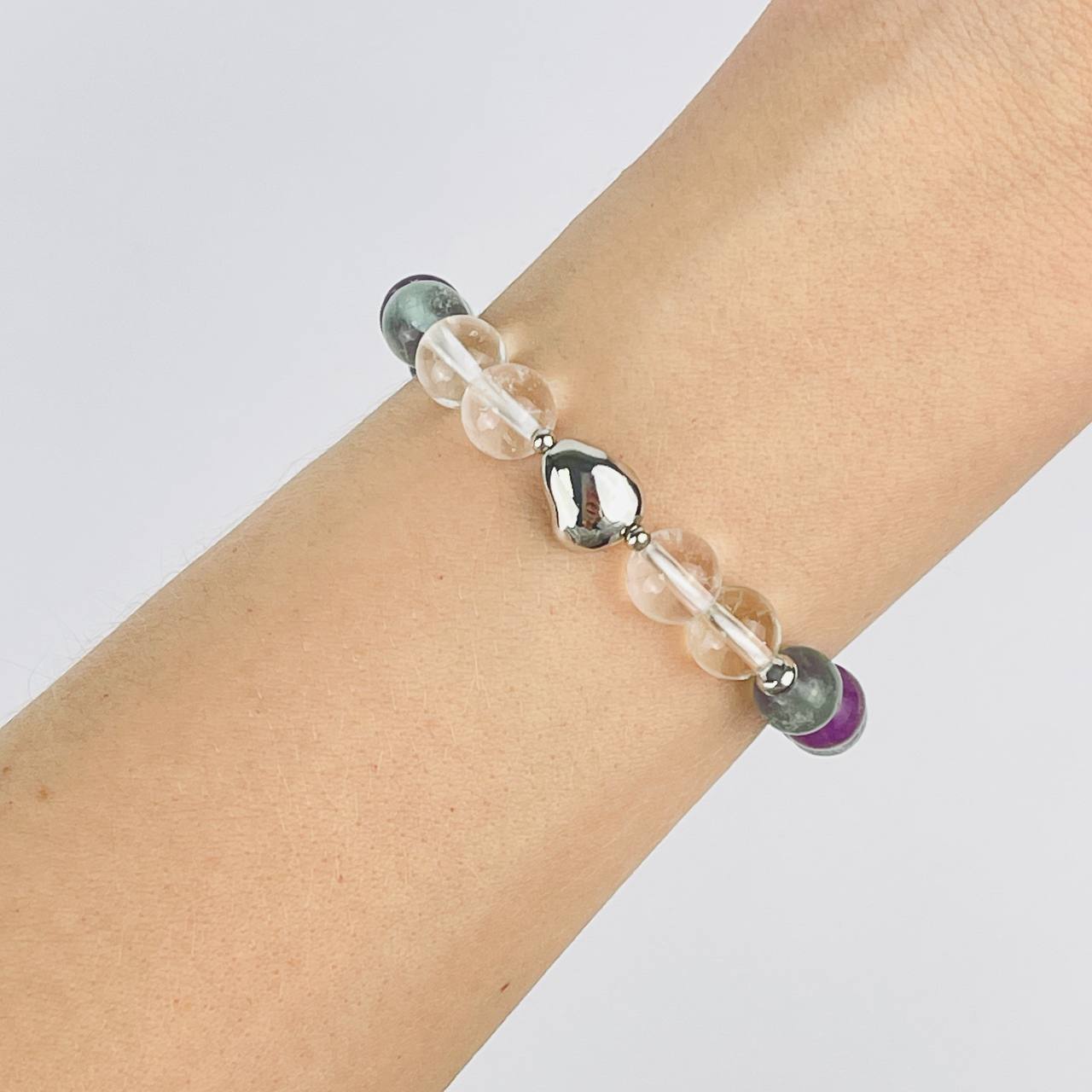 Браслет из Флюорита и Горного Хрусталя со вставкой