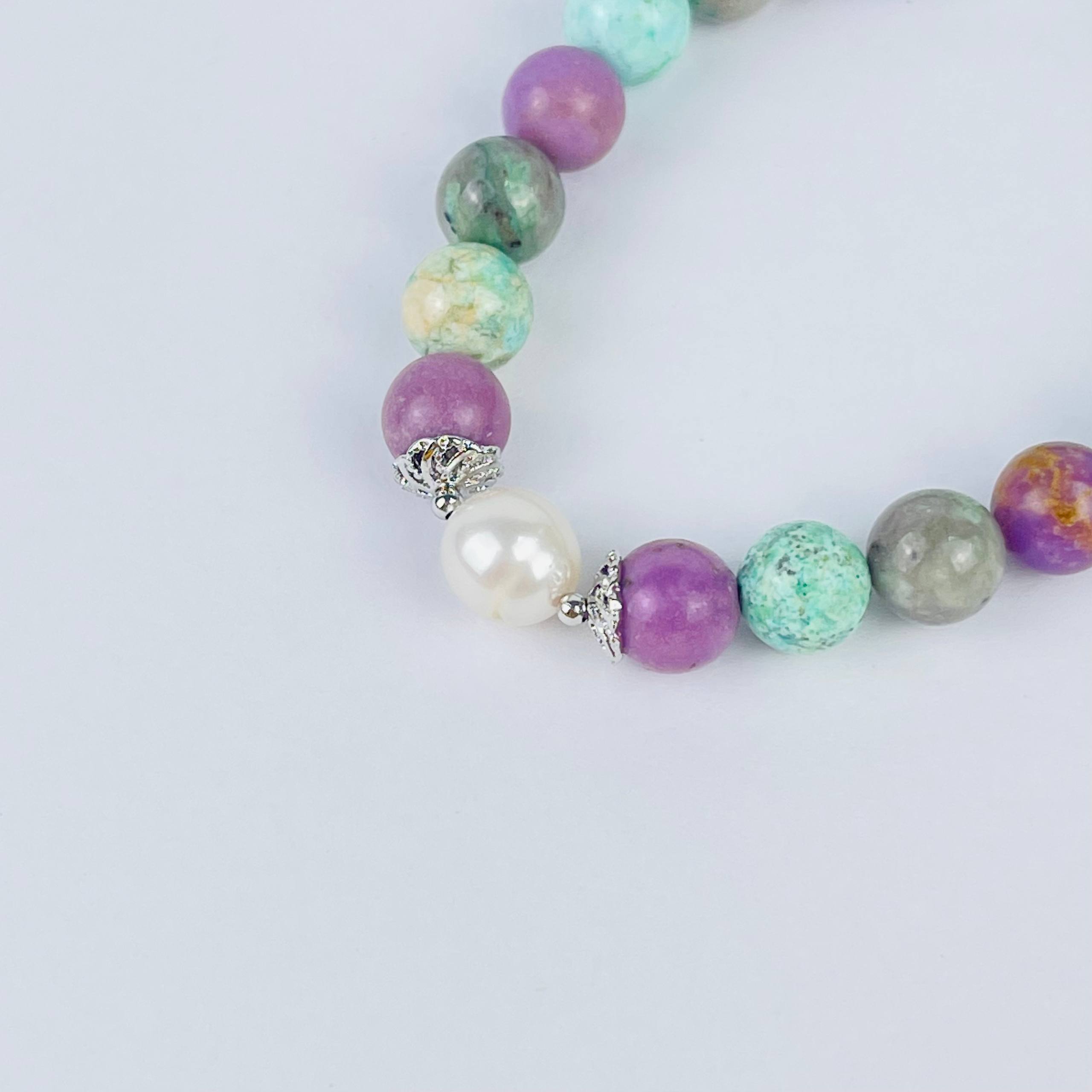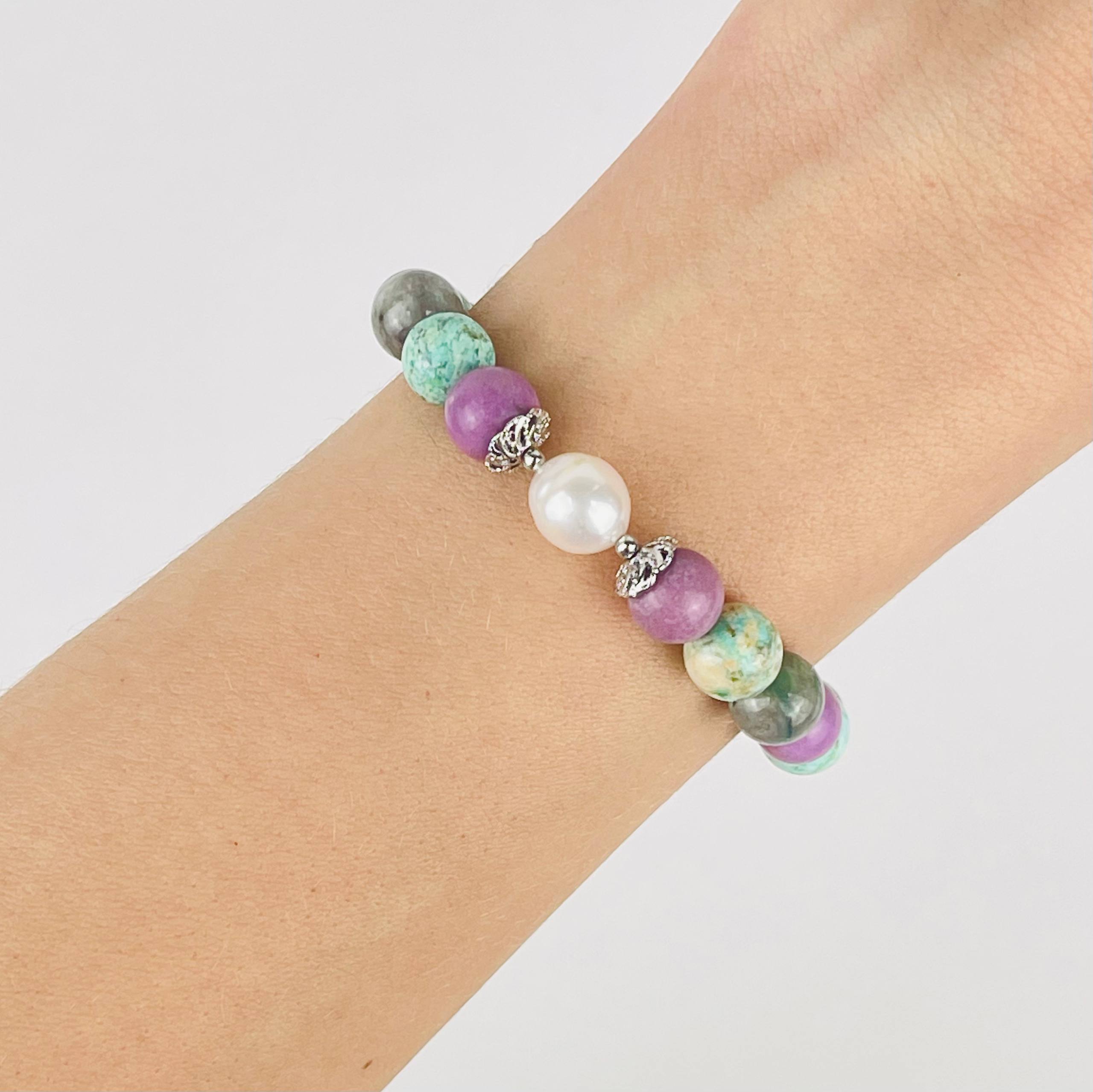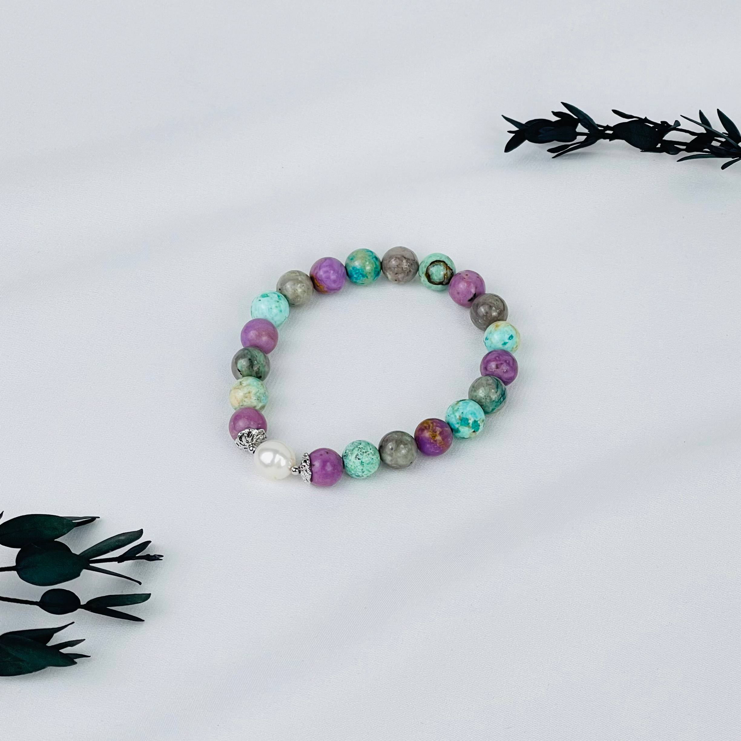 Браслет из Фосфосидерита, Варисцита и Жемчуга