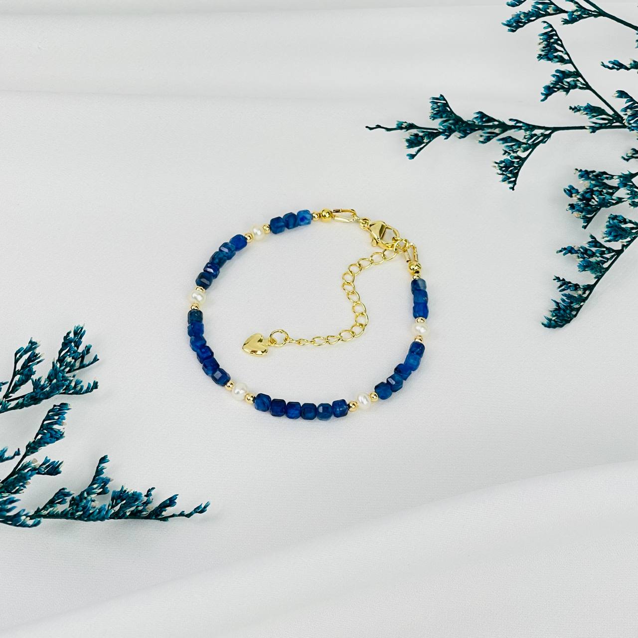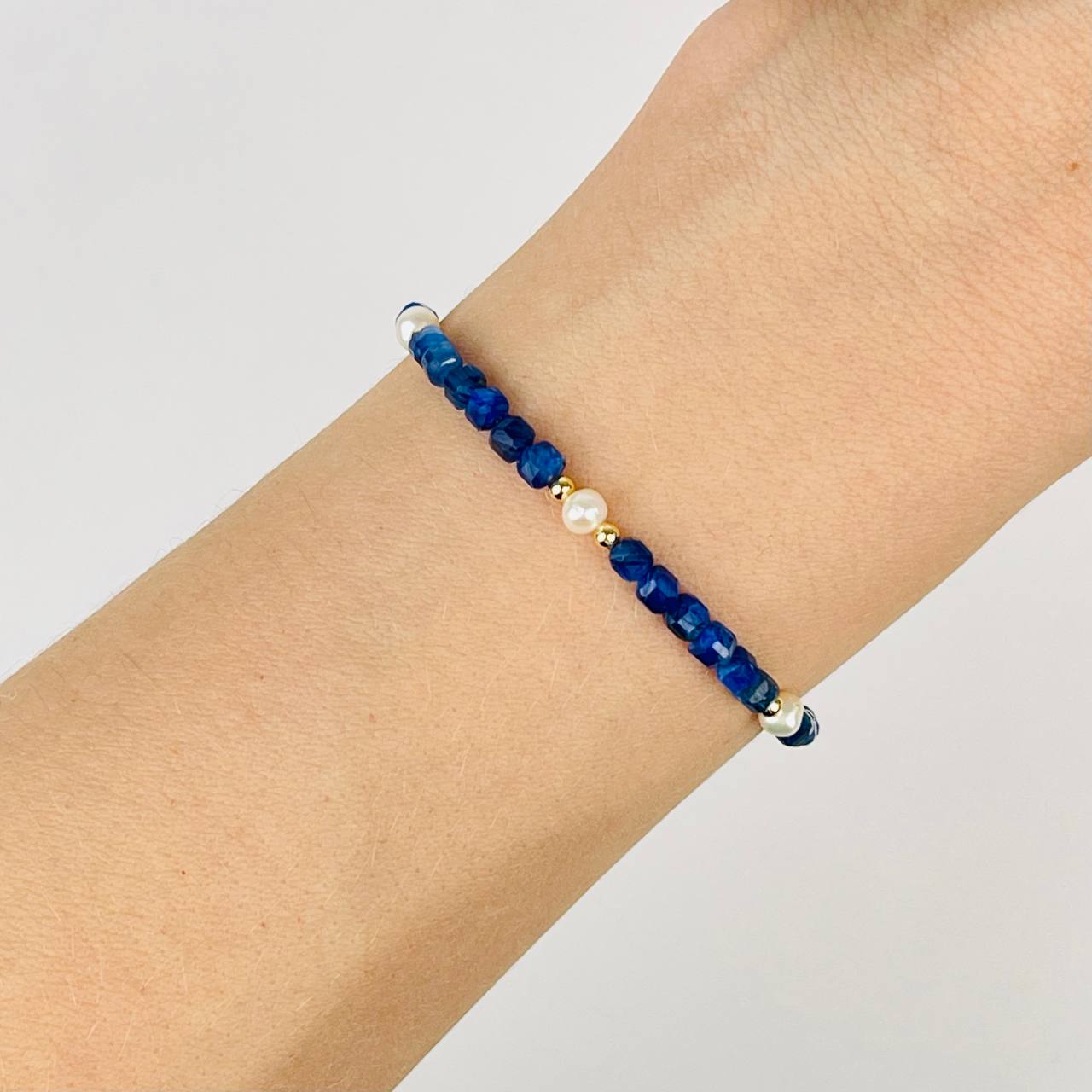 Браслет из Кианита и Жемчуга (градиент)