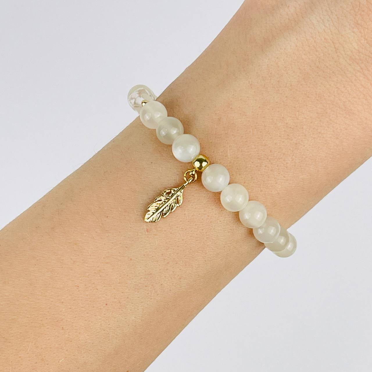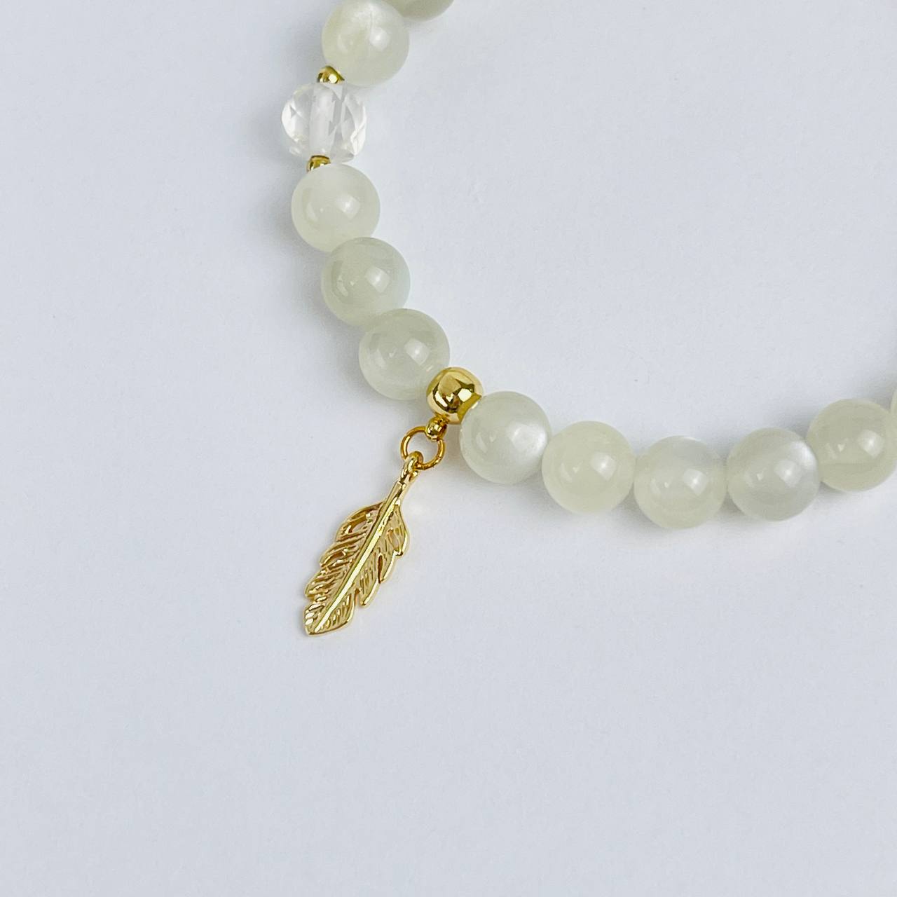 Браслет из Лунного камня и Горного Хрусталя с подвеской