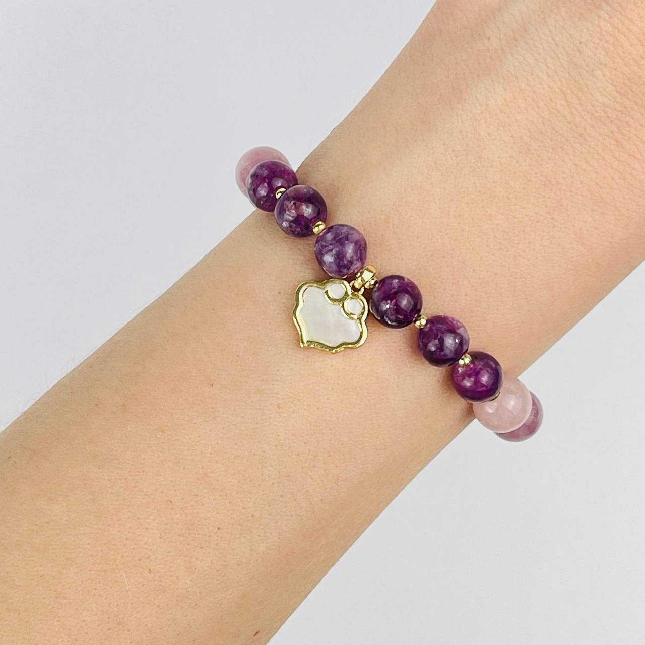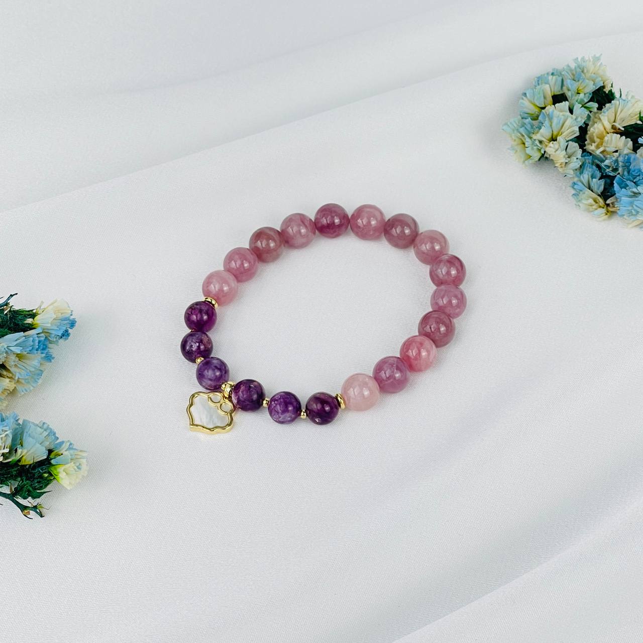 Браслет из мадагаскарского Розового кварца и Лепидолита с подвеской