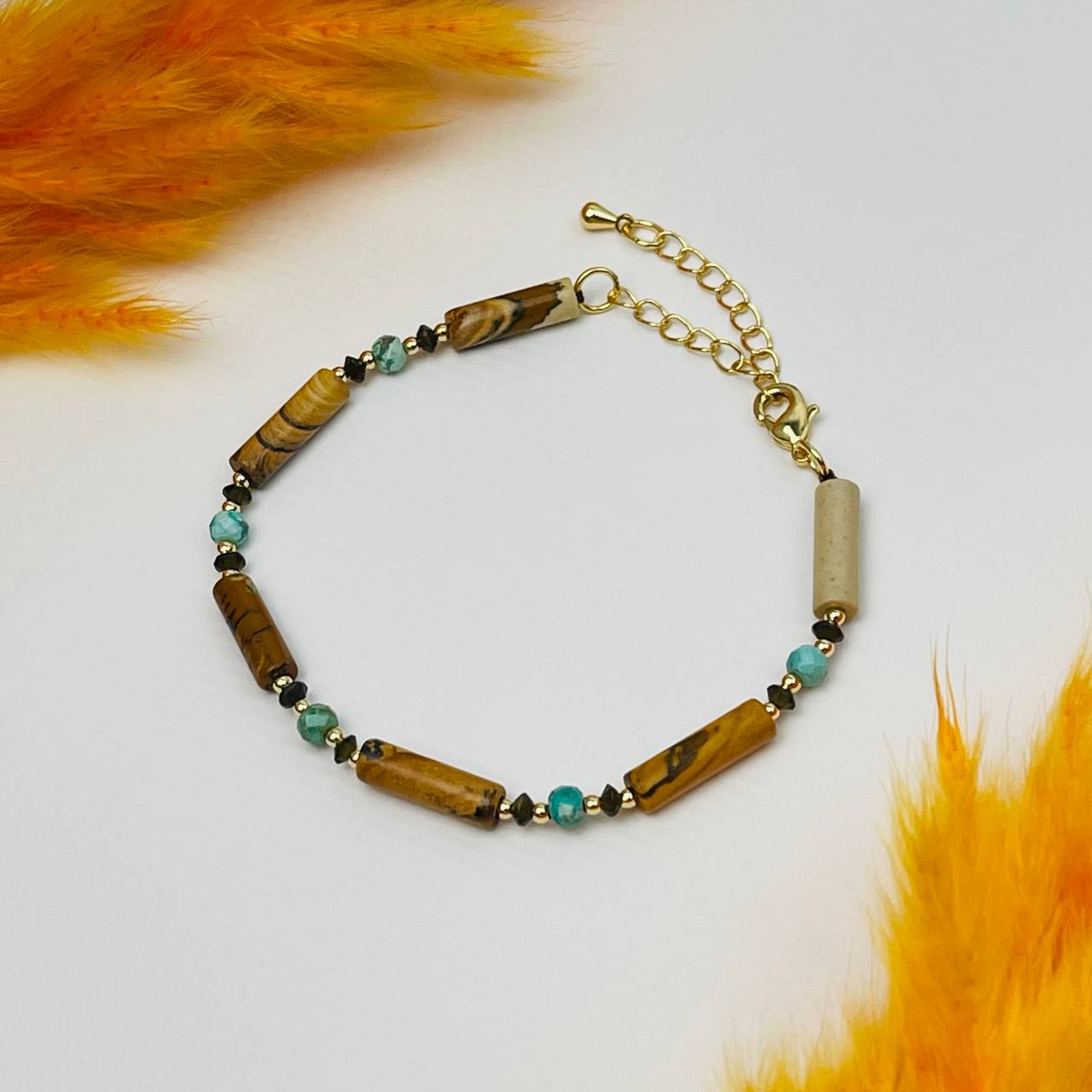 Браслет из песочной Яшмы, Обсидиана и Бирюзы