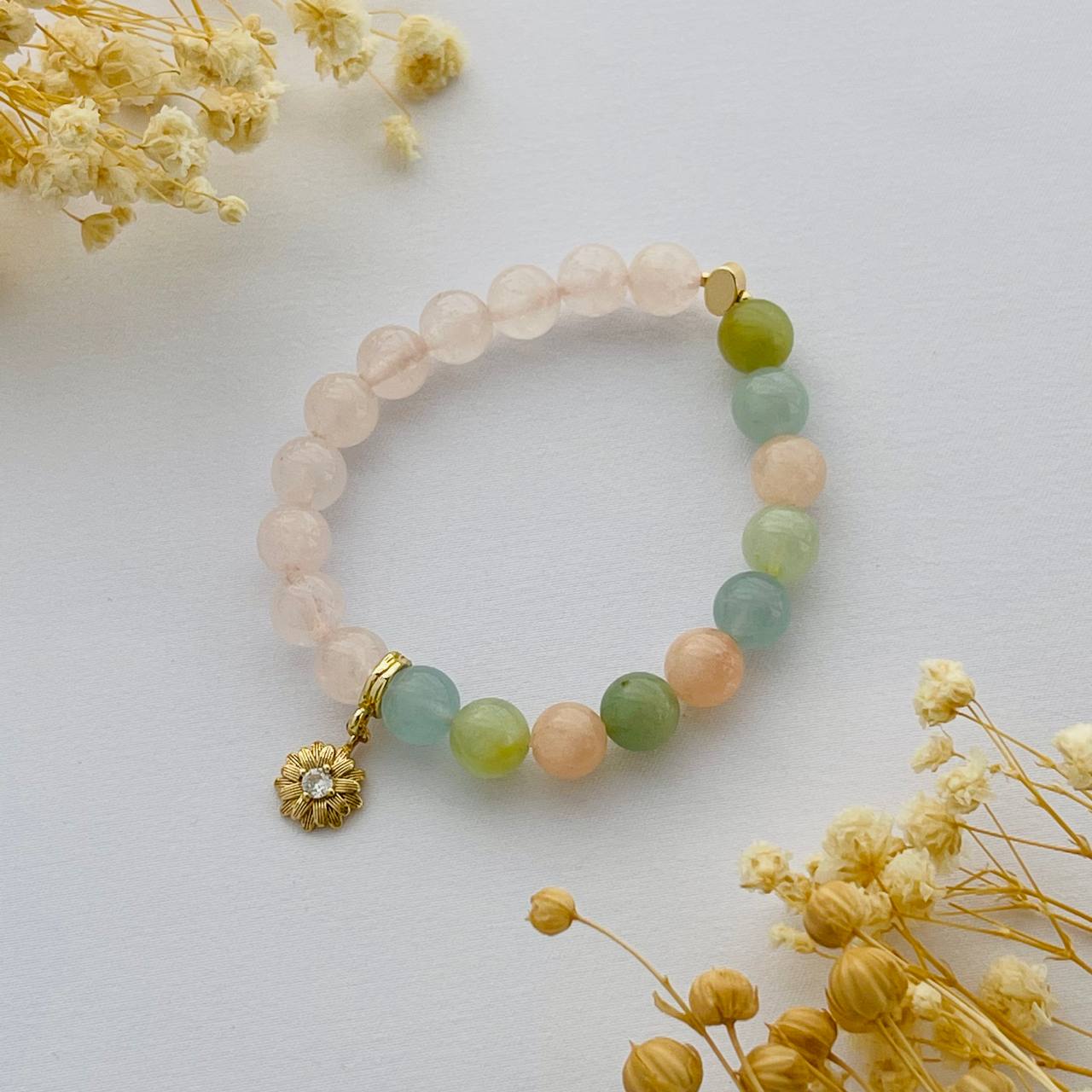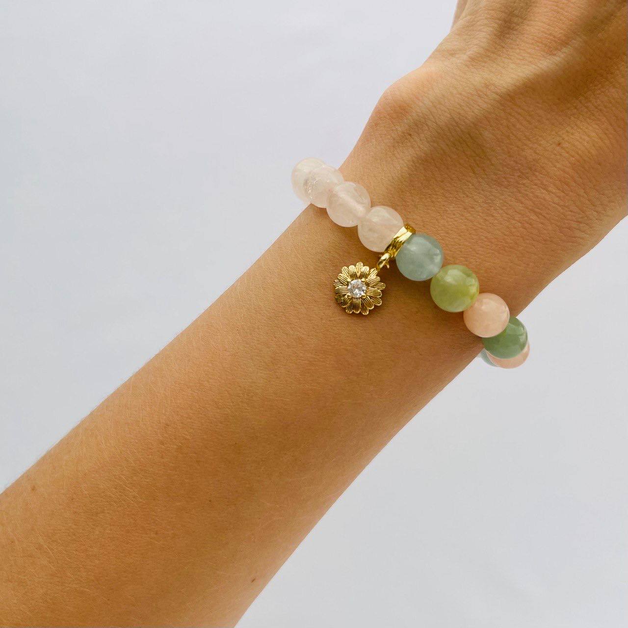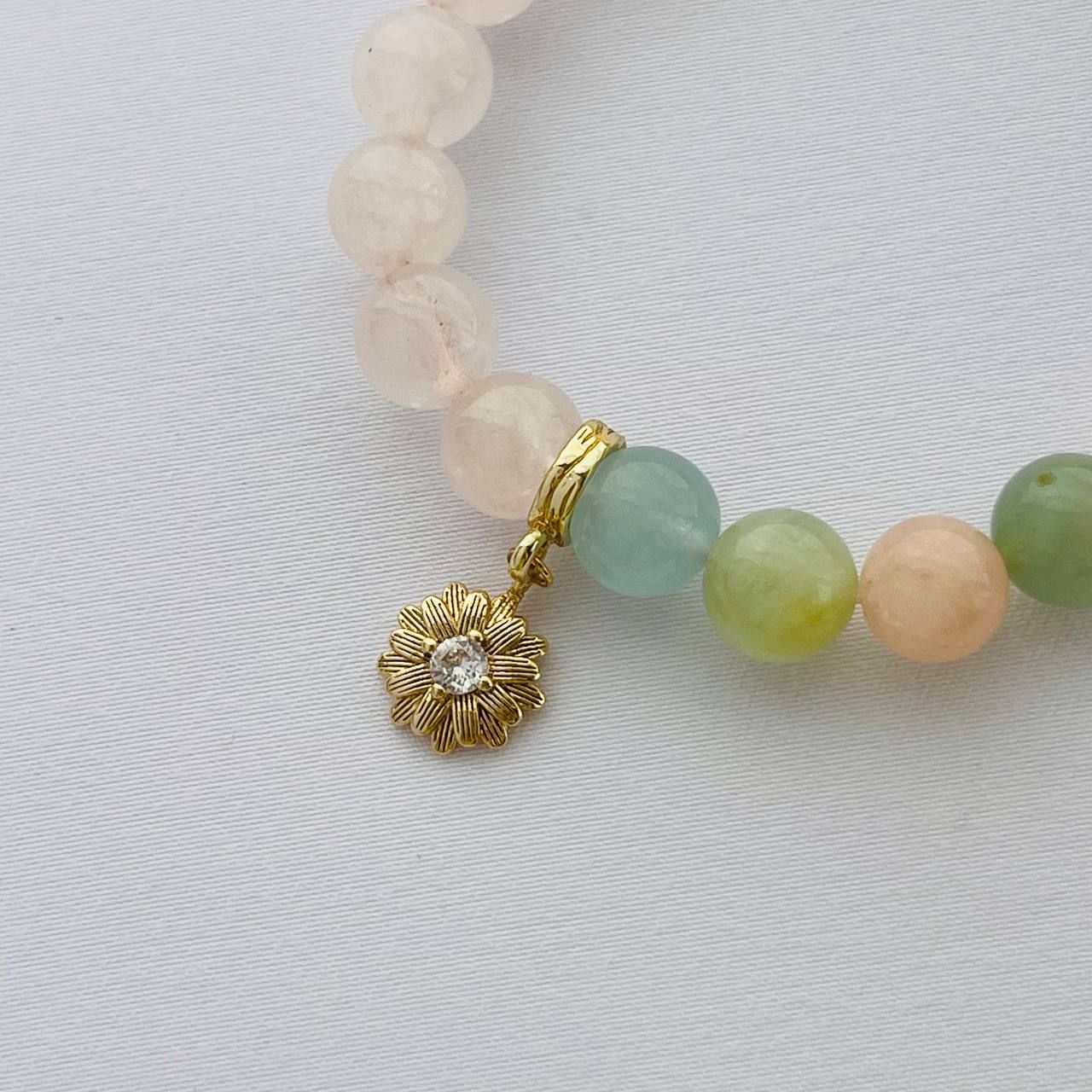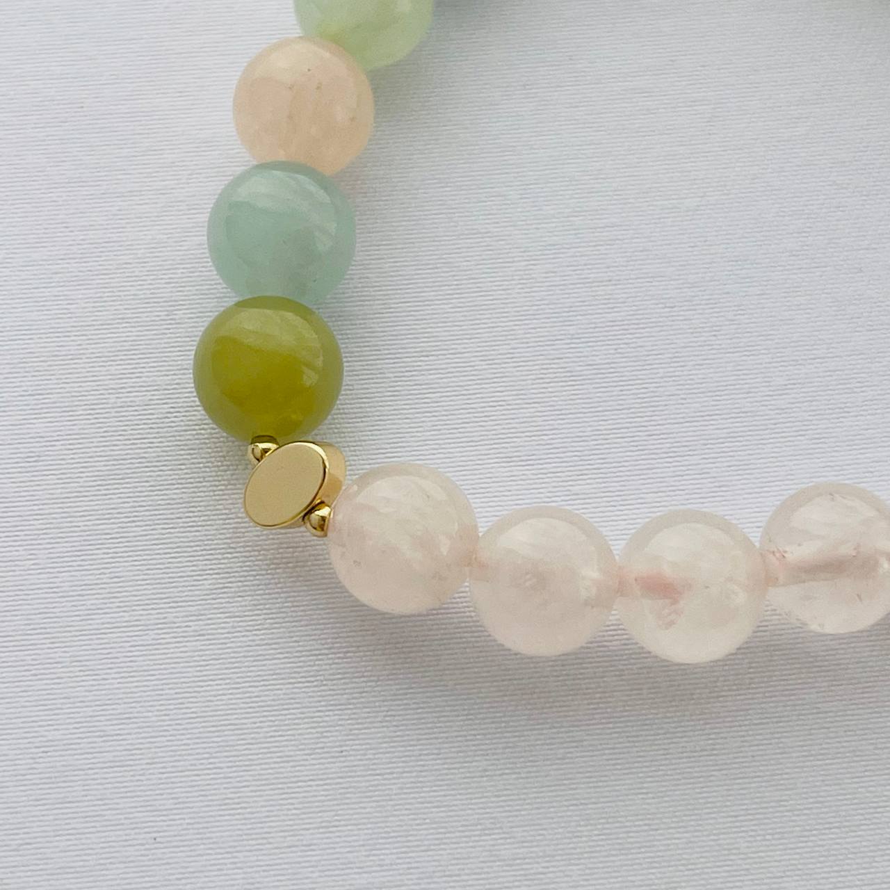 Браслет из Розового кварца и Берилла микс с подвеской