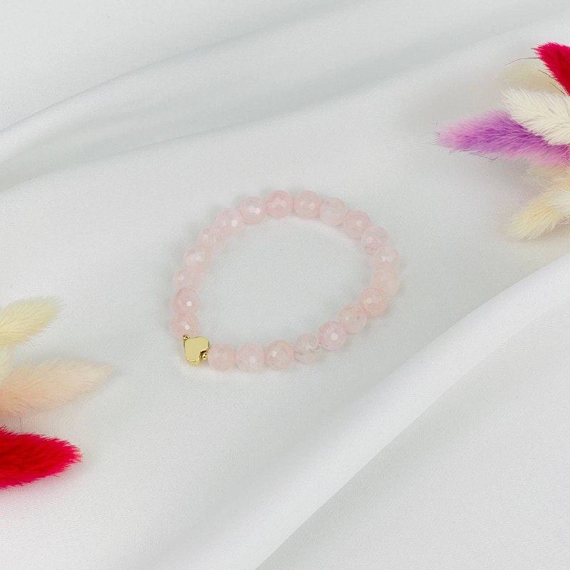 Браслет из Розового кварца со вставкой сердце