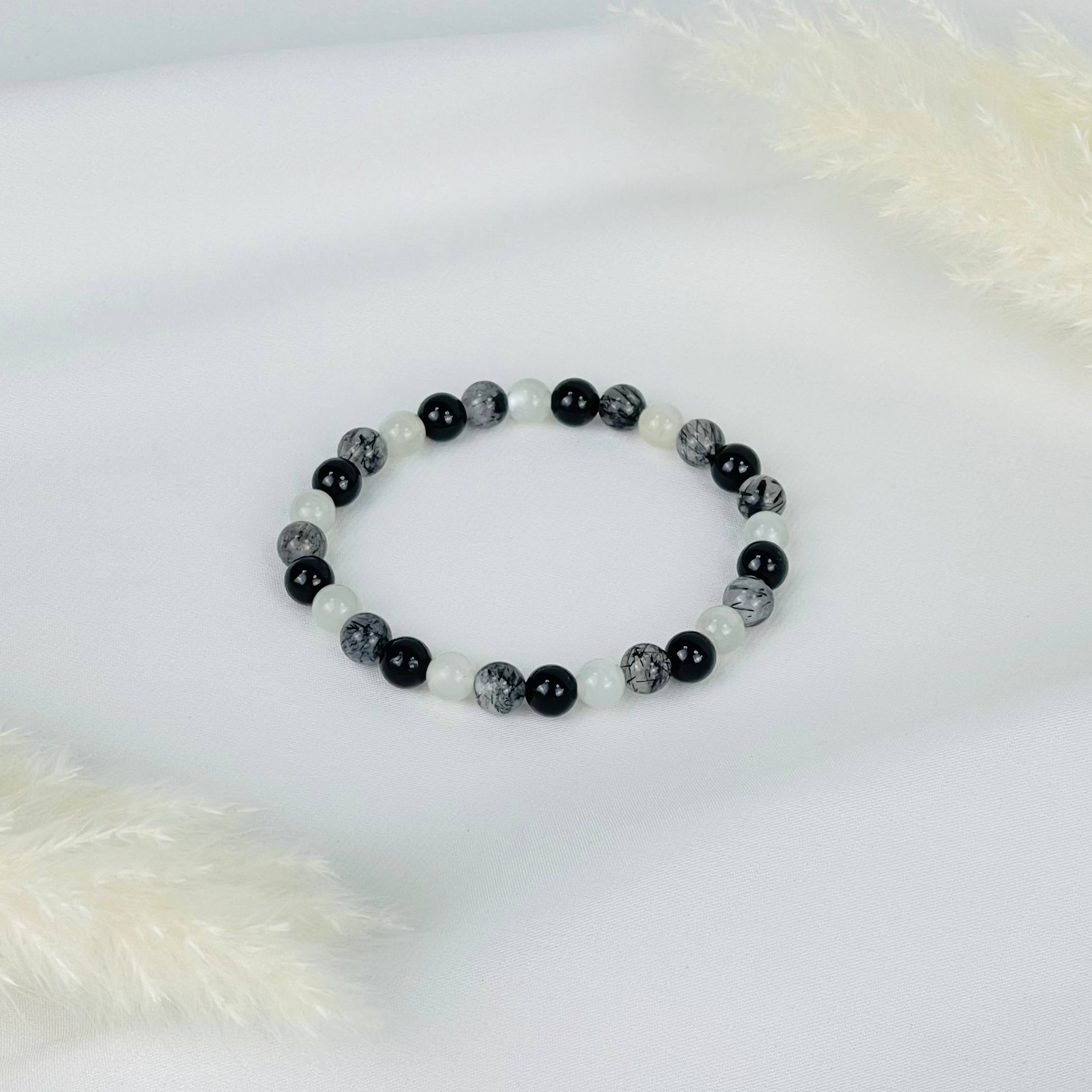 Браслет из Турмалина, Лунного камня и Кварца