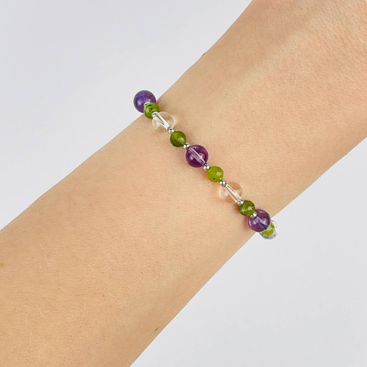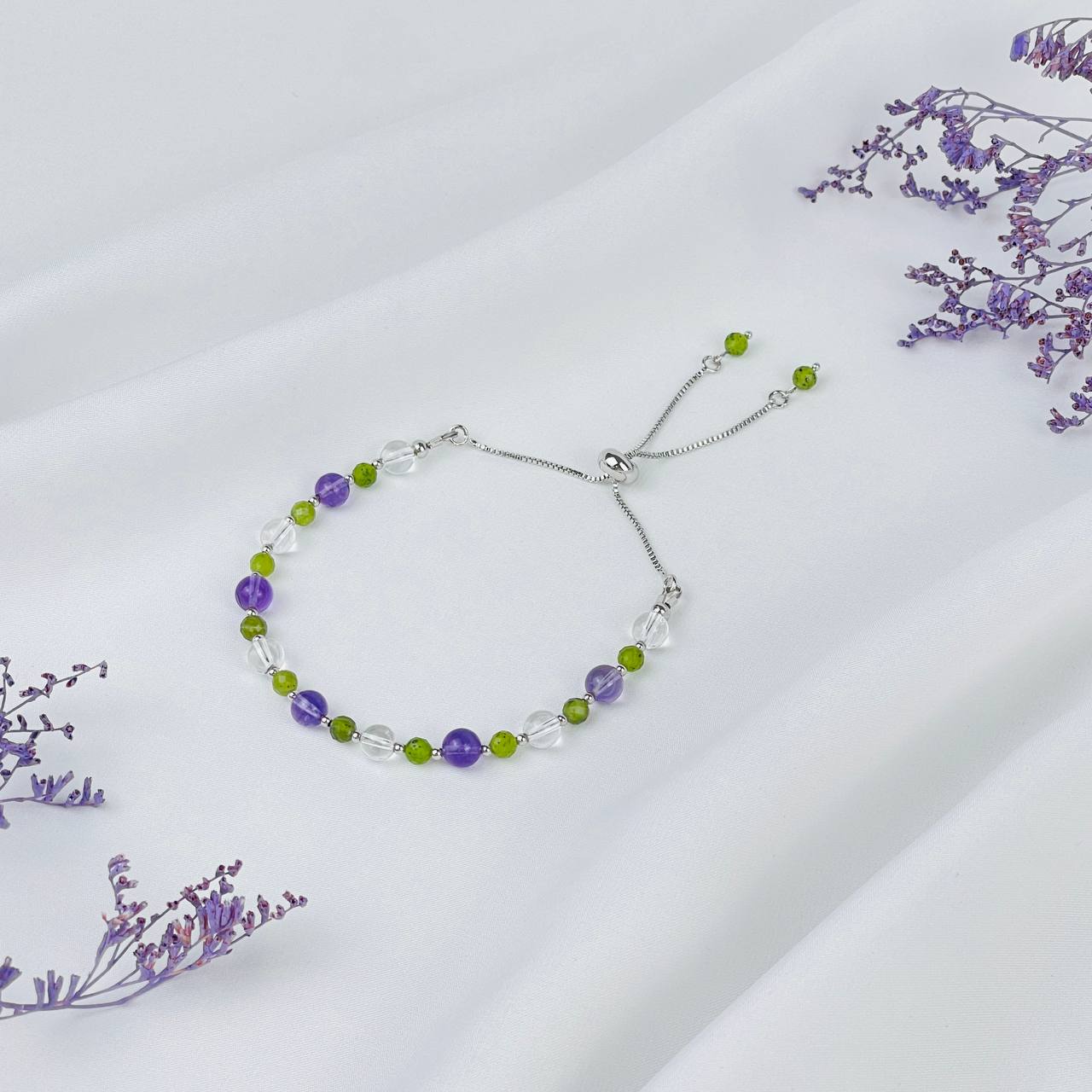 Браслет регулируемый из Аметиста, Горного Хрусталя и Змеевика