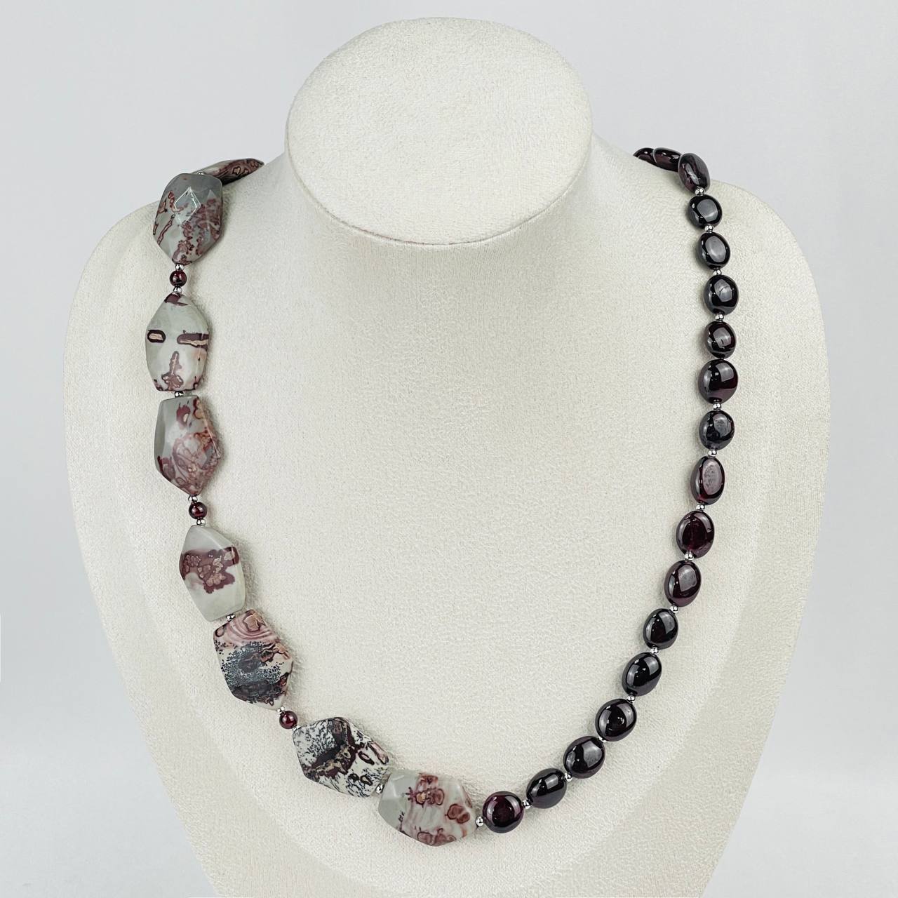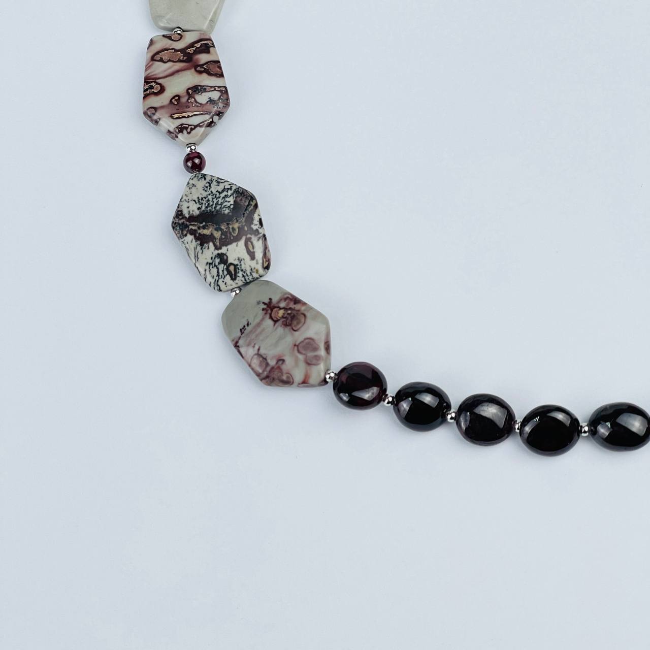 Колье из Граната и пейзажной Яшмы
