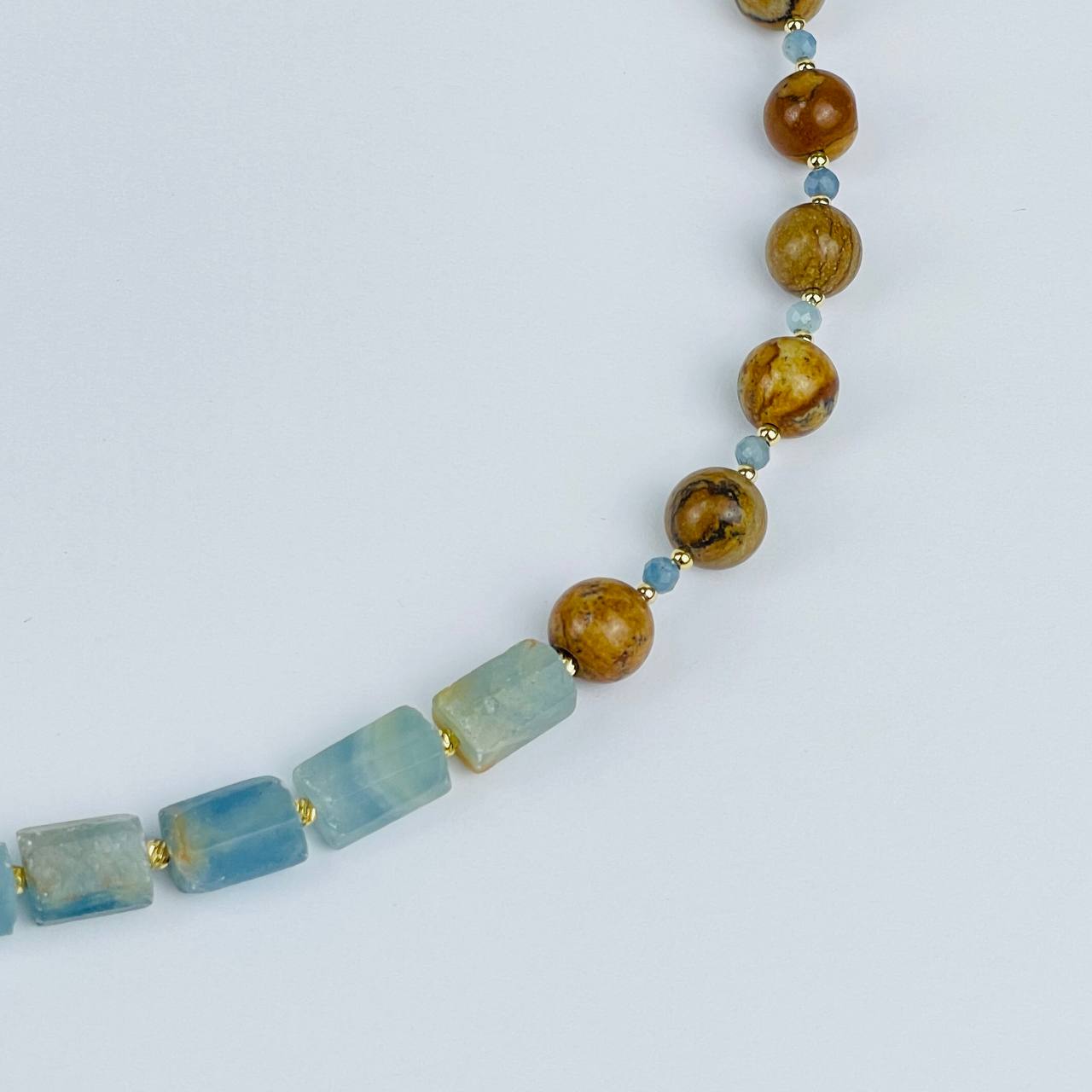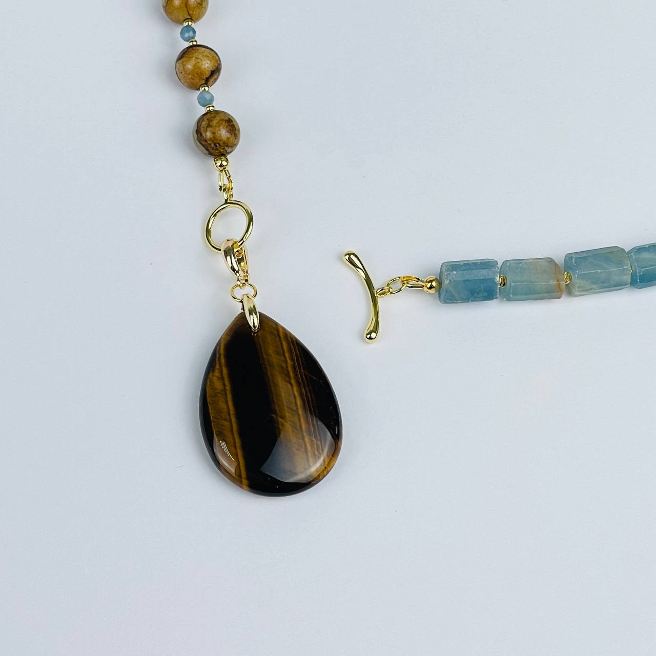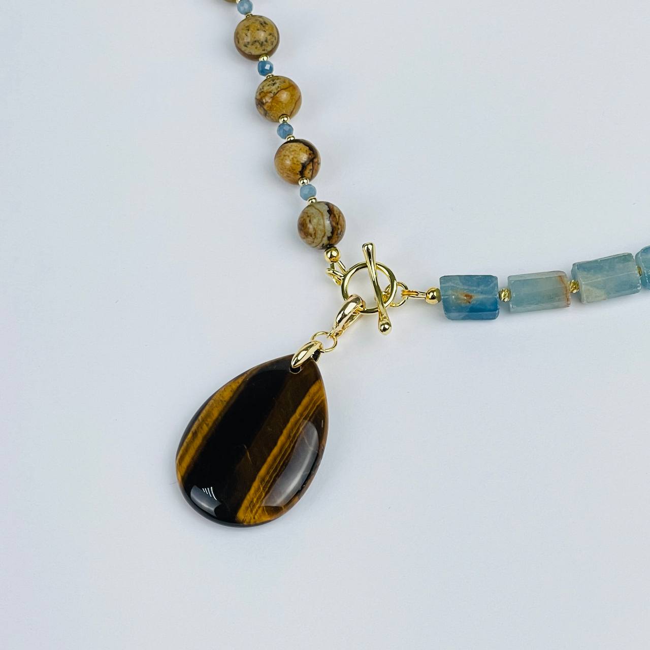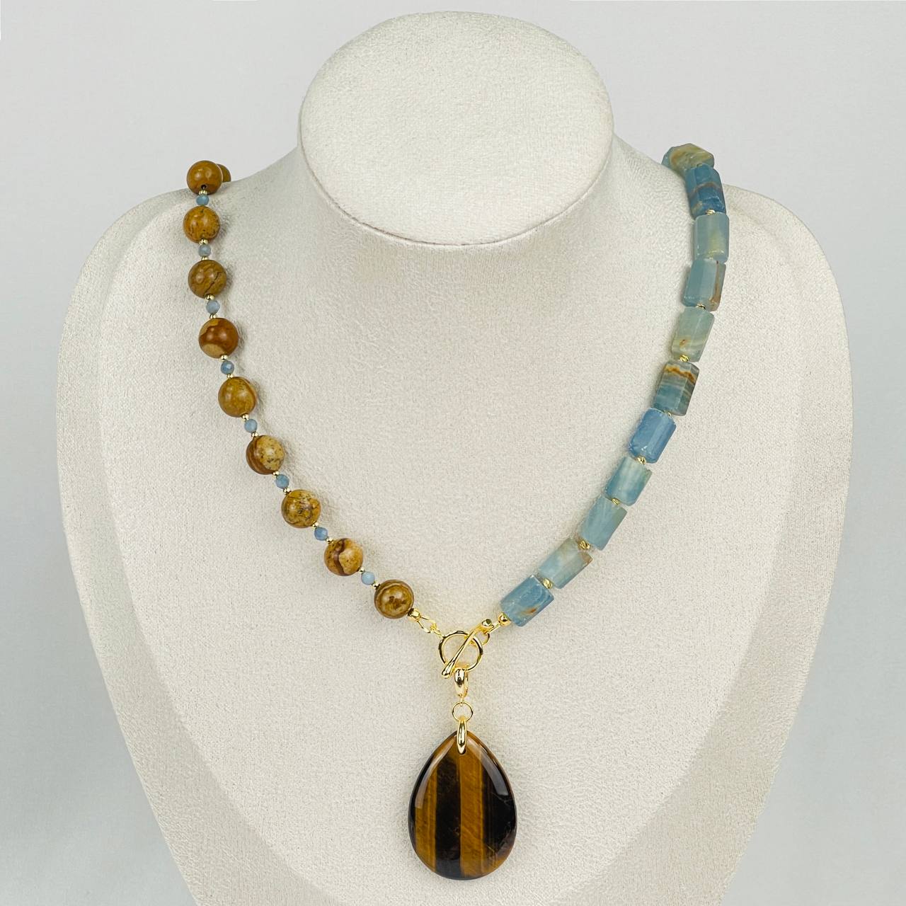Колье из карибского Кальцита, Яшмы и Тигрового глаза