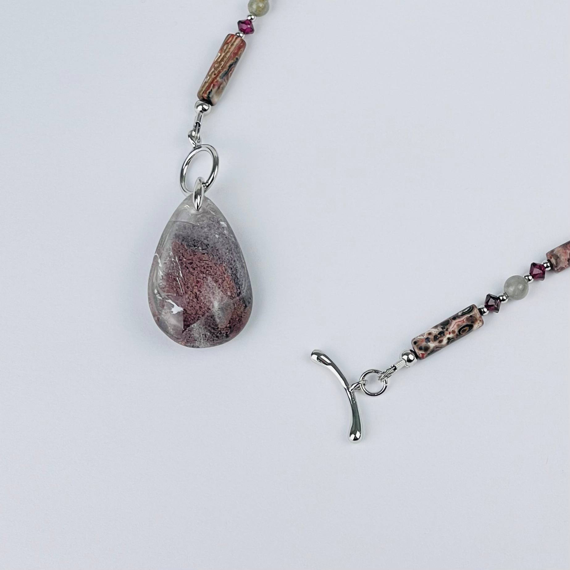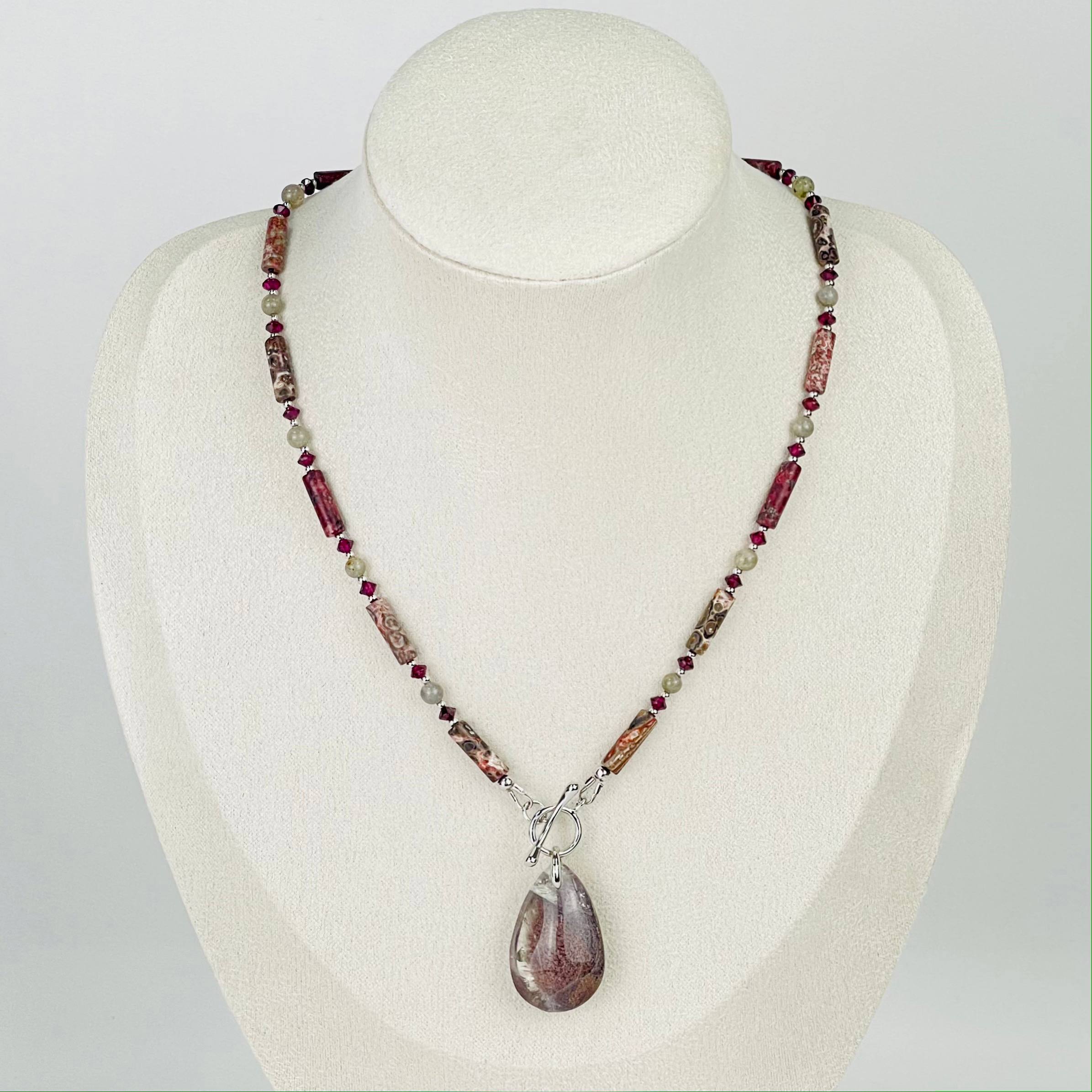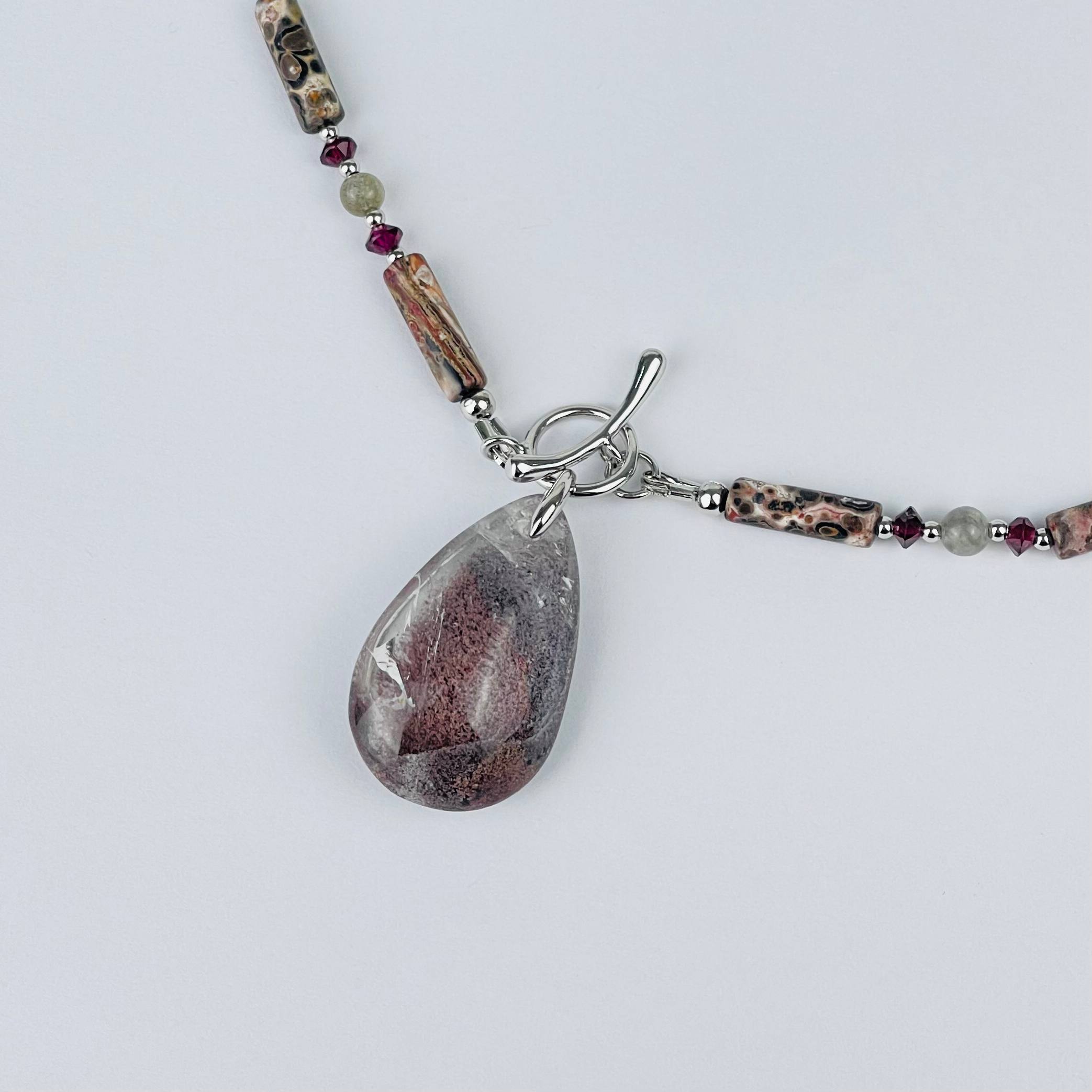 Колье из леопардовой Яшмы, Лабрадора, Граната и Лодолита