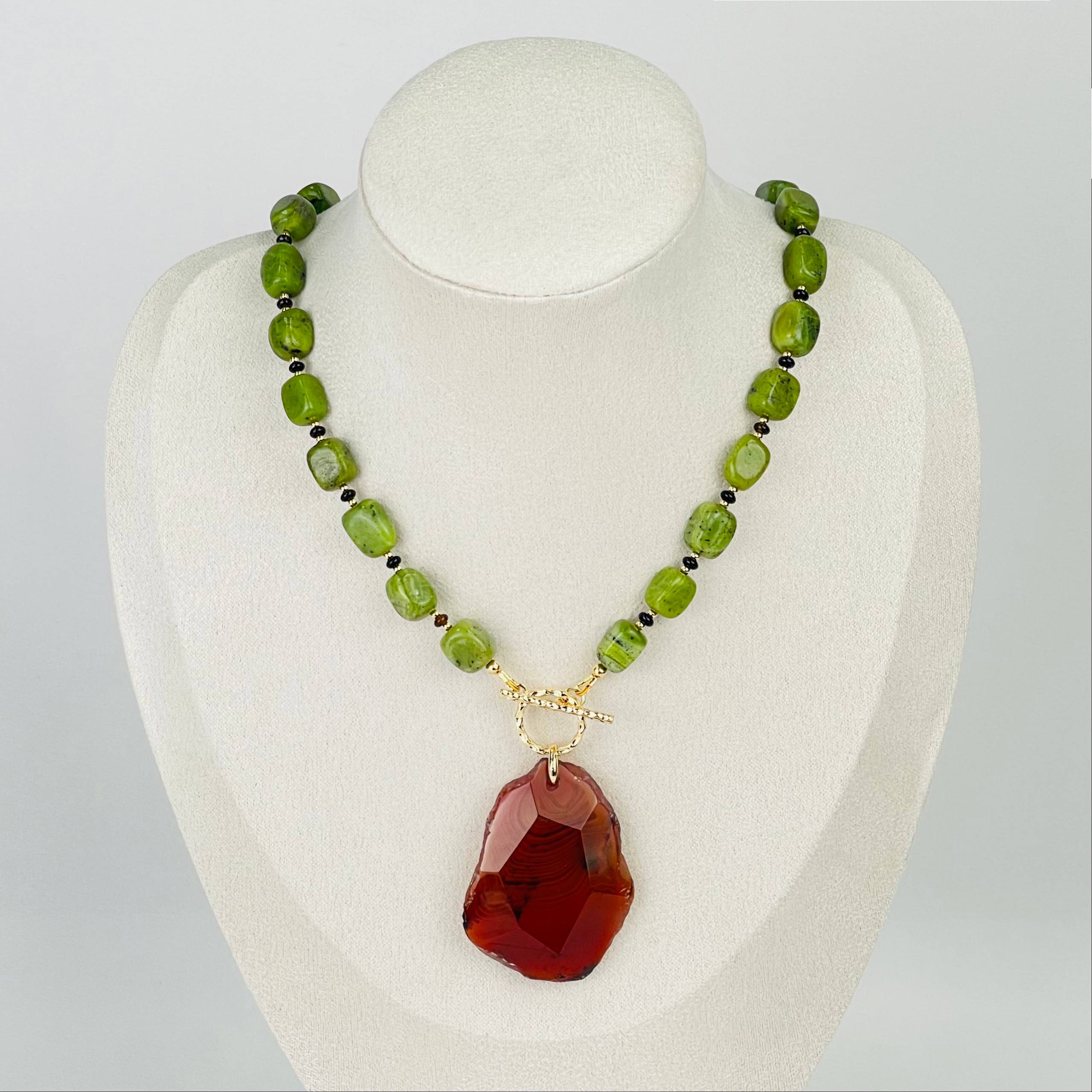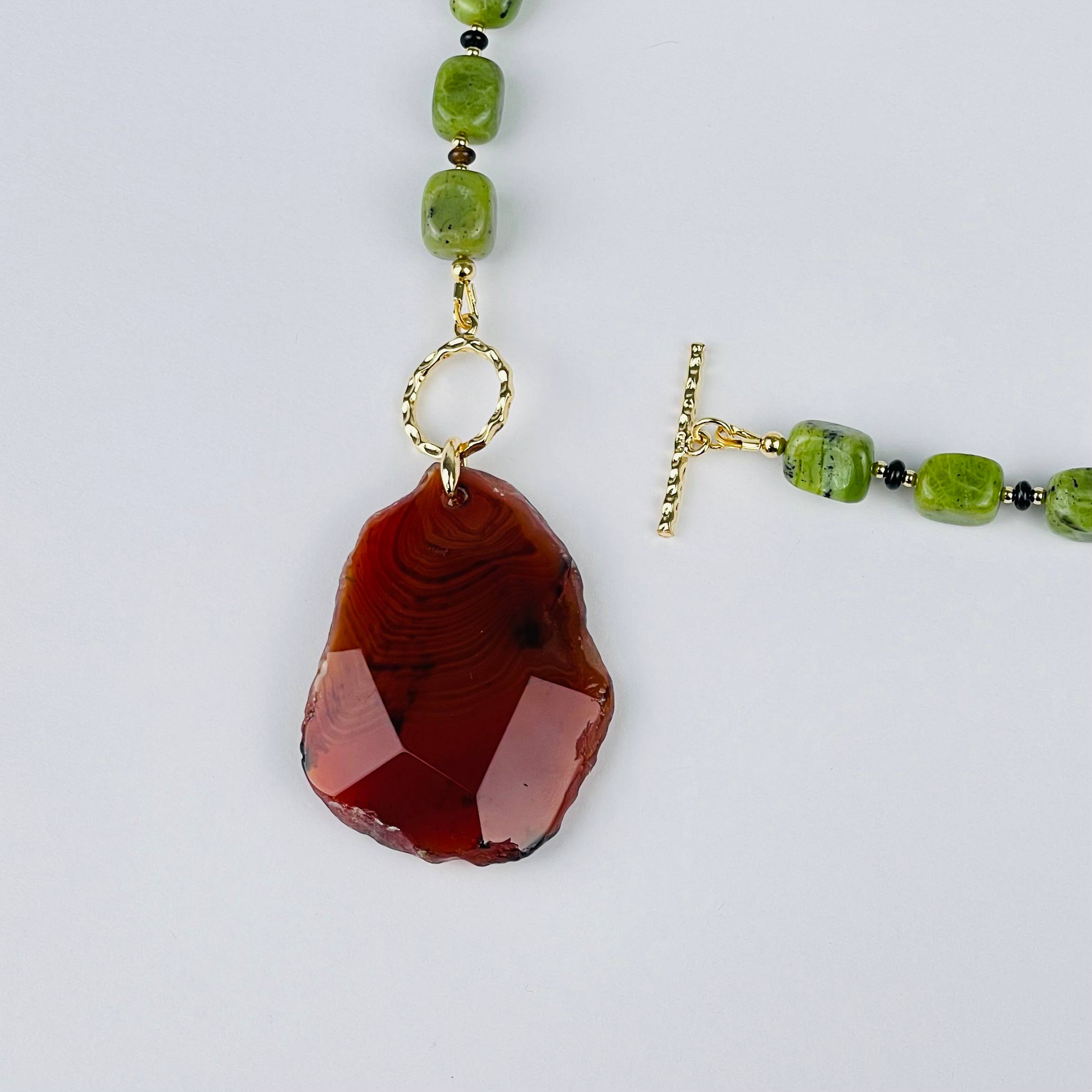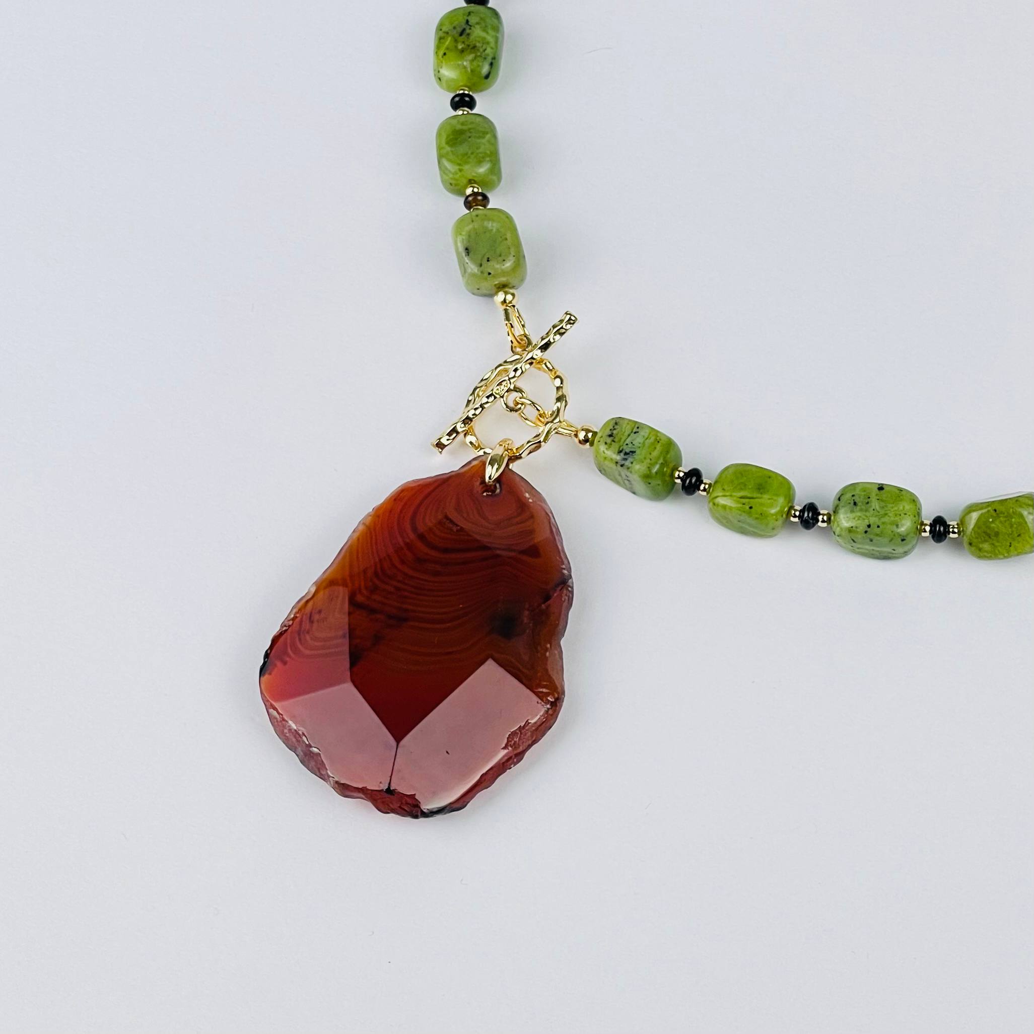 Колье из Змеевика (Серпентинит), Агата и Сердолика