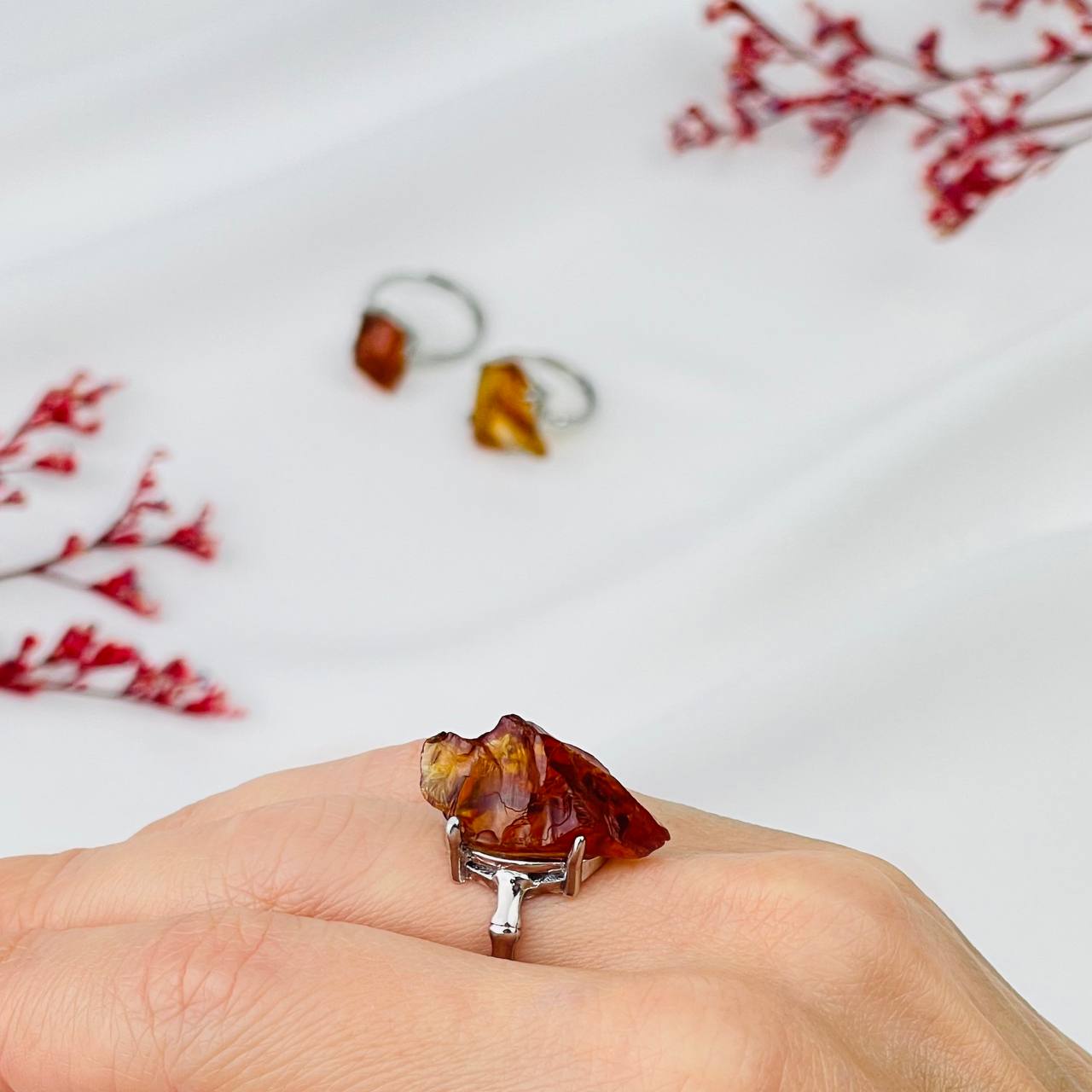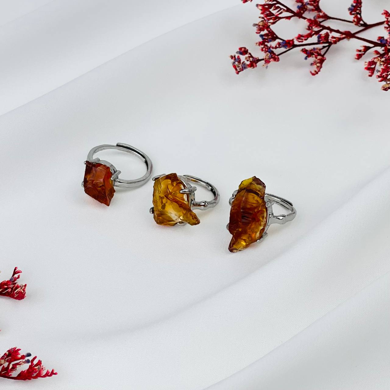 Кольцо регулируемое из необработанного Янтаря
