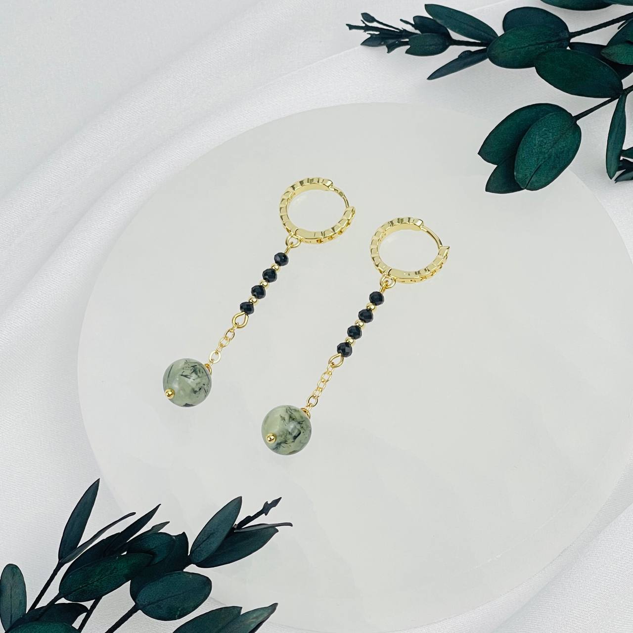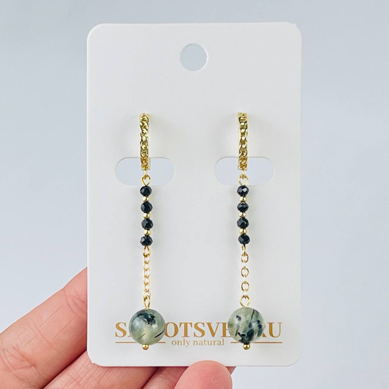 Серьги длинные из Шпинели и Пренита