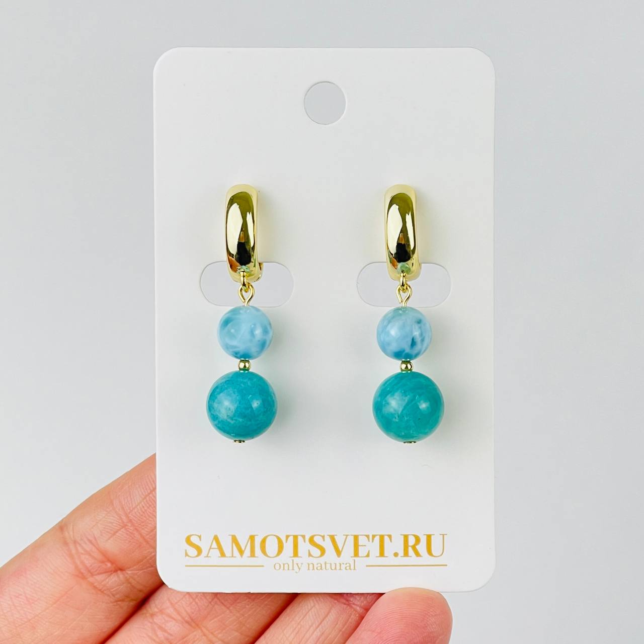 Серьги из Амазонита и Ларимара