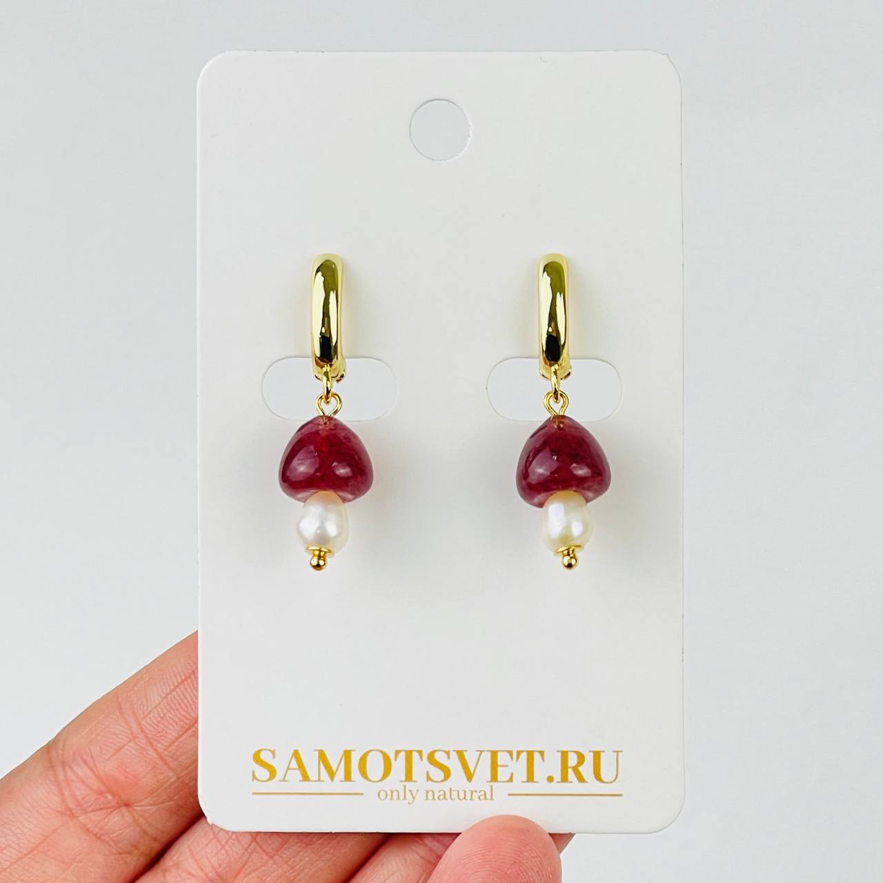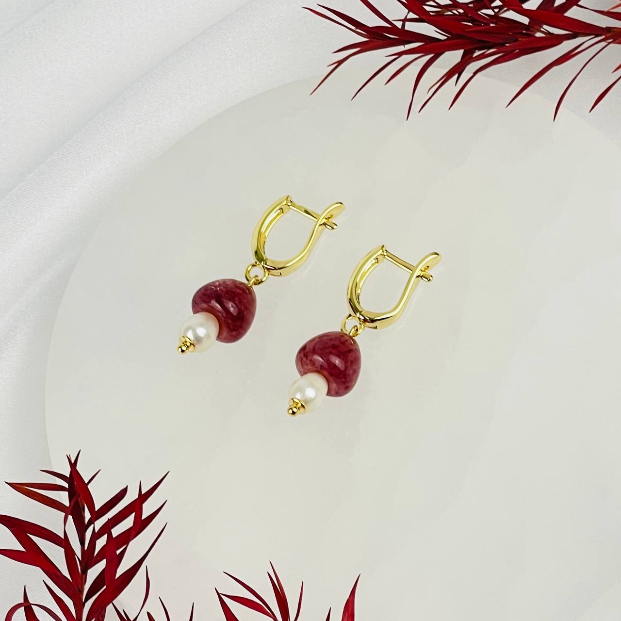 Серьги из Клубничного кварца и Жемчуга