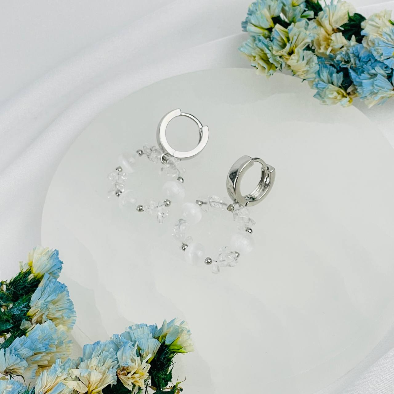Серьги из Селенита и Горного Хрусталя