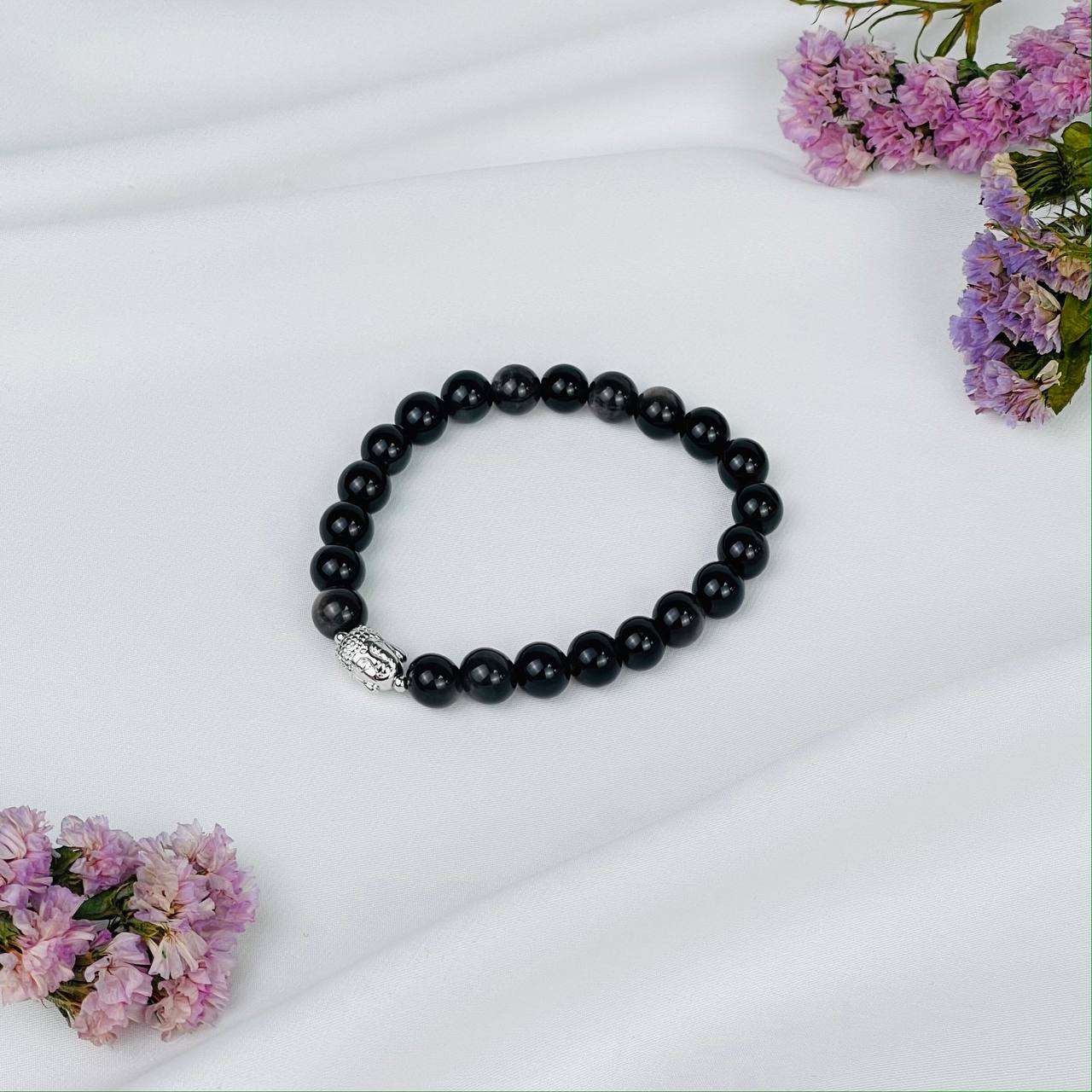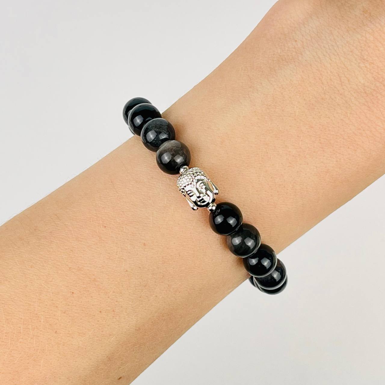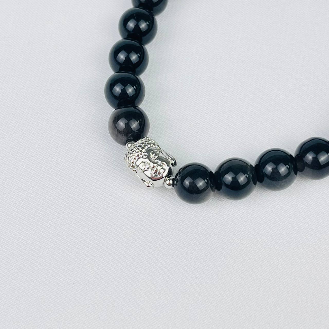 Браслет Будда из серебристого Обсидиана