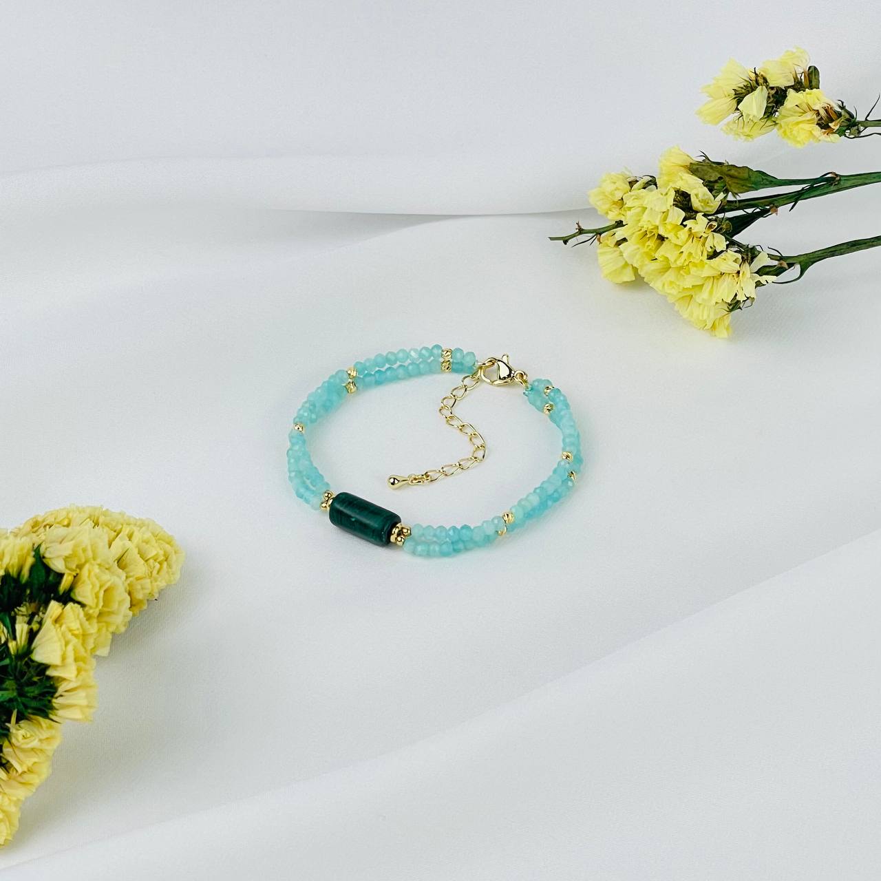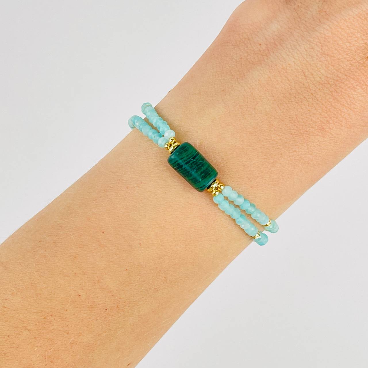 Браслет двойной из Амазонита и Малахита