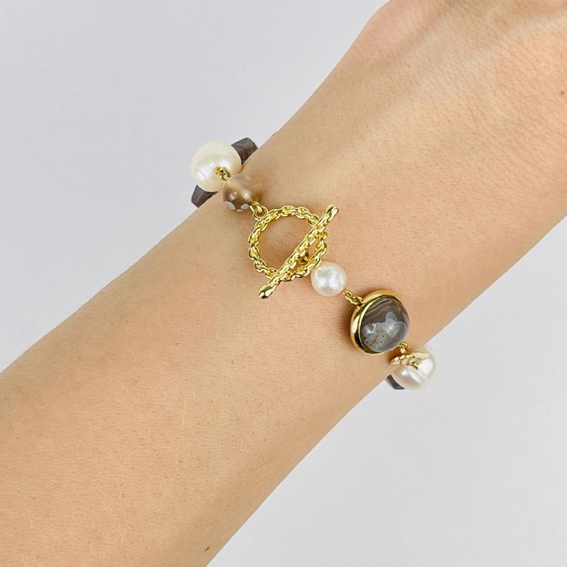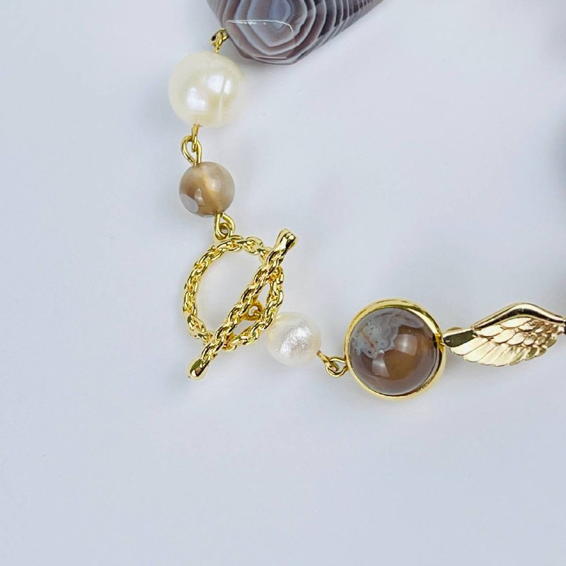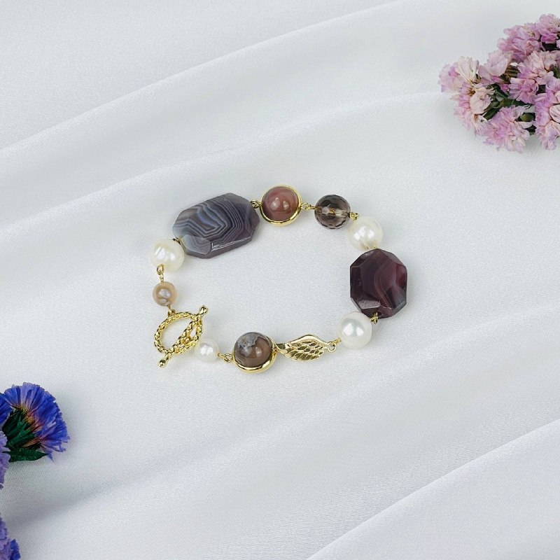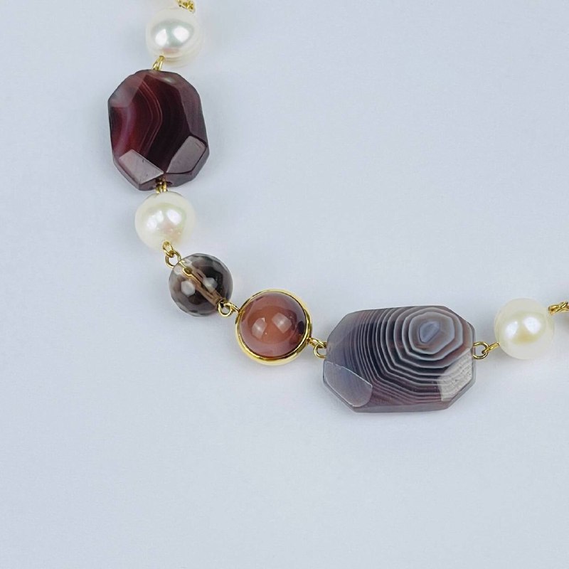 Браслет из ботсванского Агата, Раухтопаза и Жемчуга