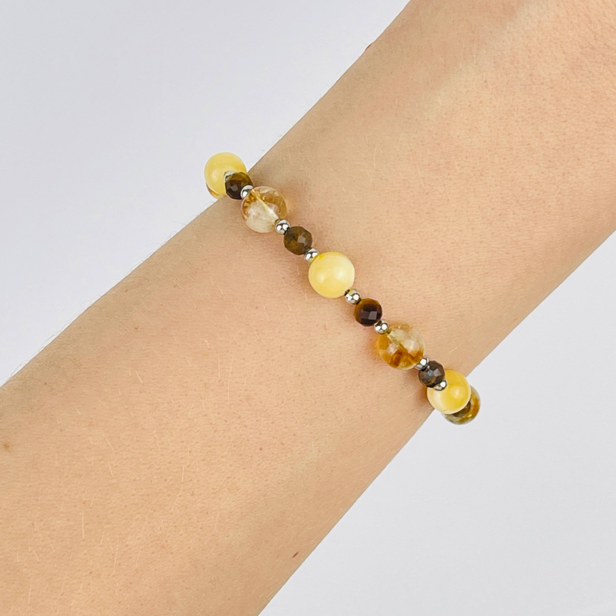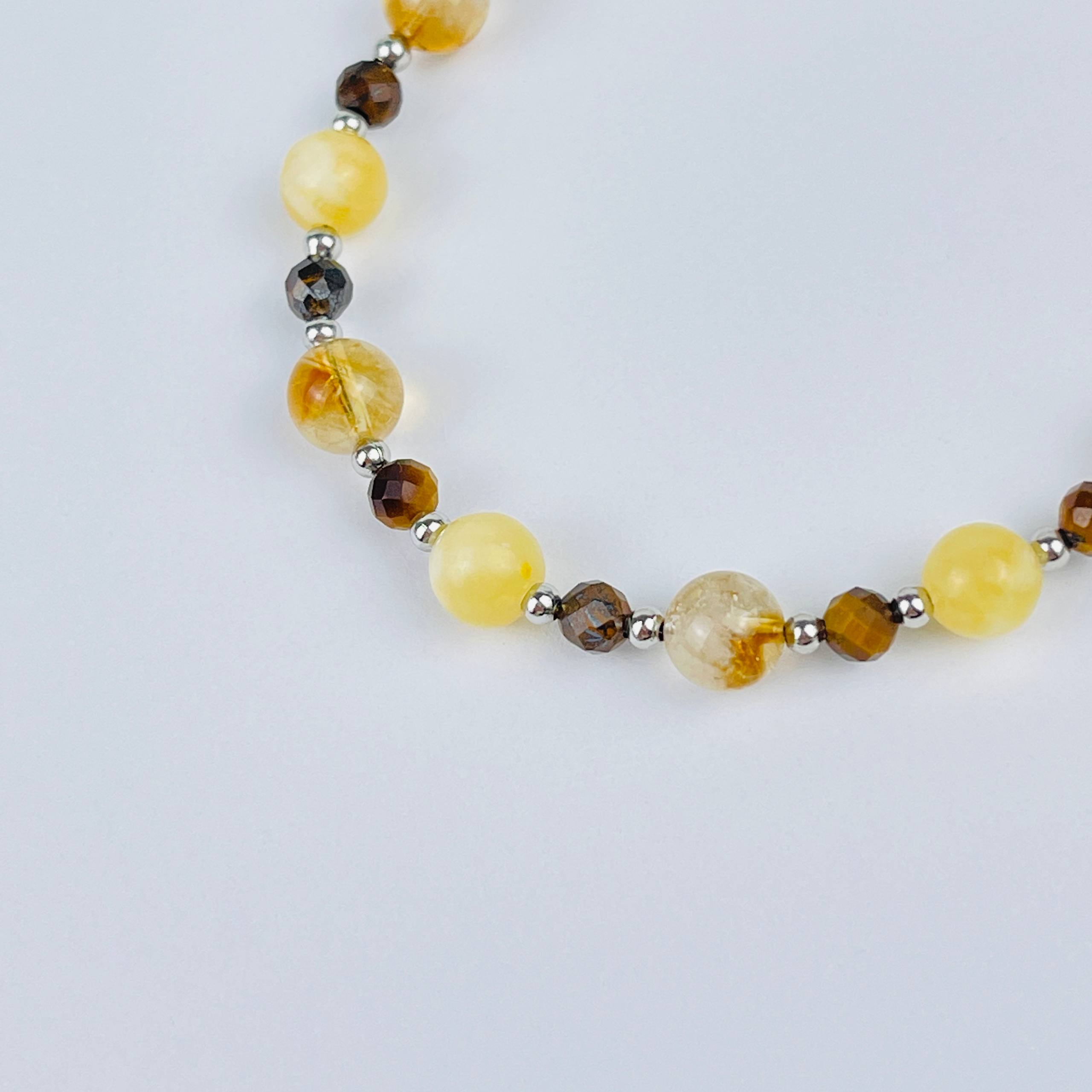 Браслет (Манипура) регулируемый из Цитрина, Кальцита и Тигрового глаза