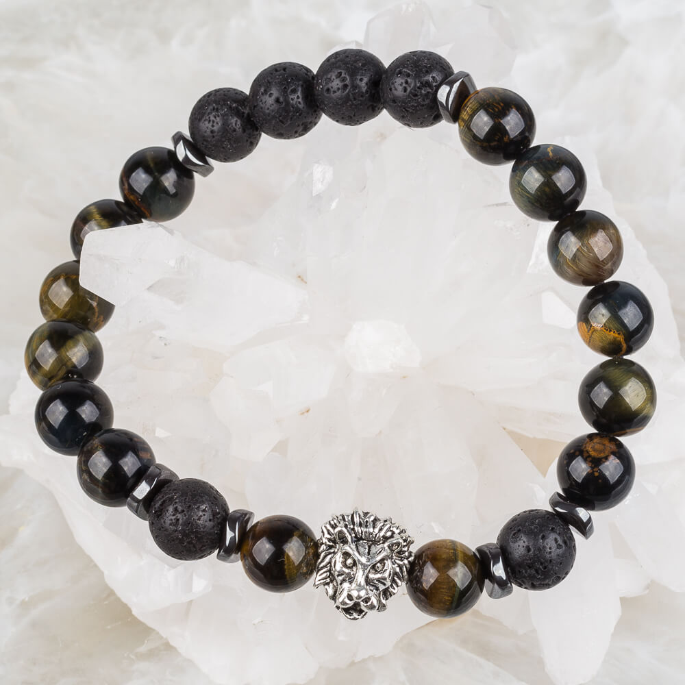 Браслет мужской "Лев" из Тигрово-соколиного глаза и Лавы