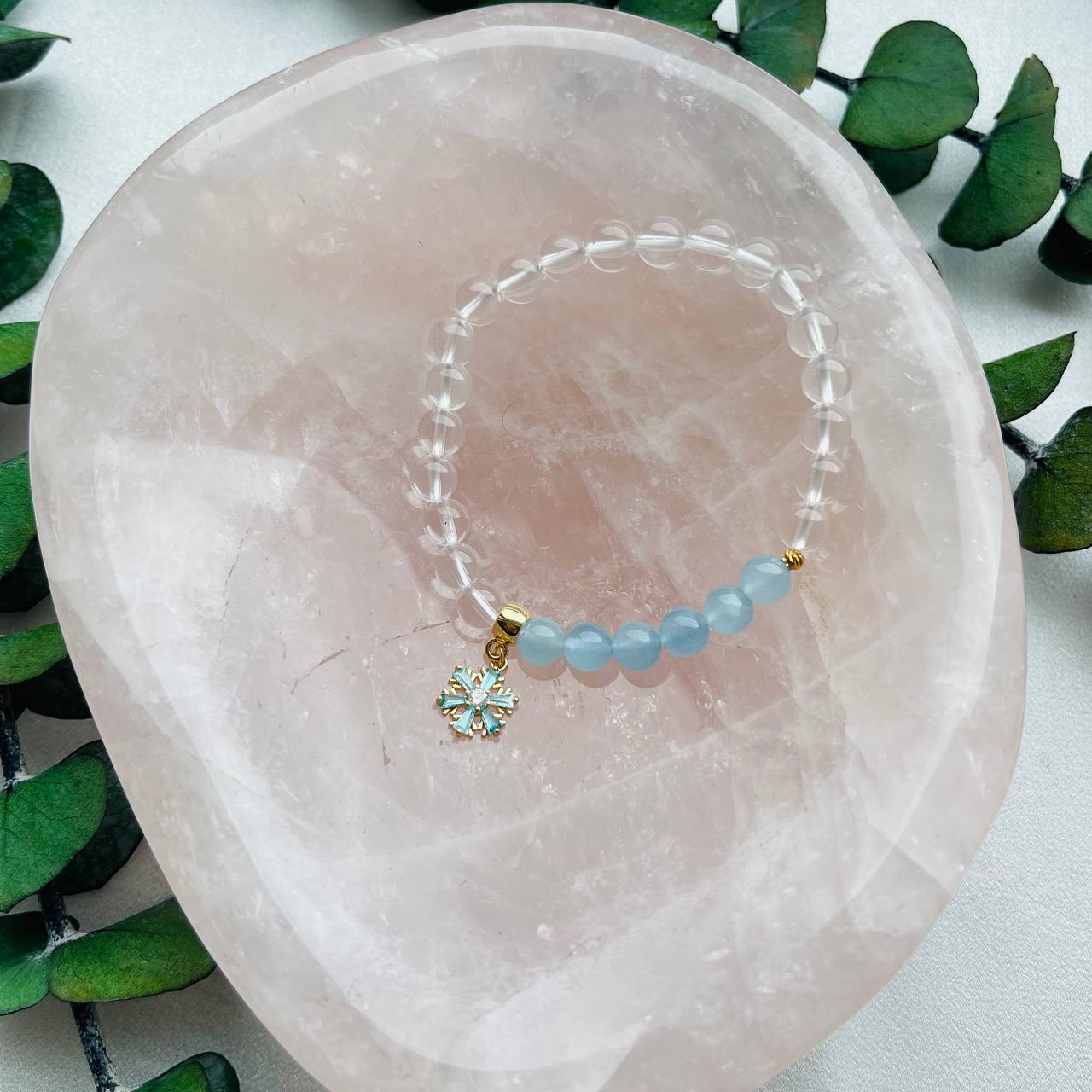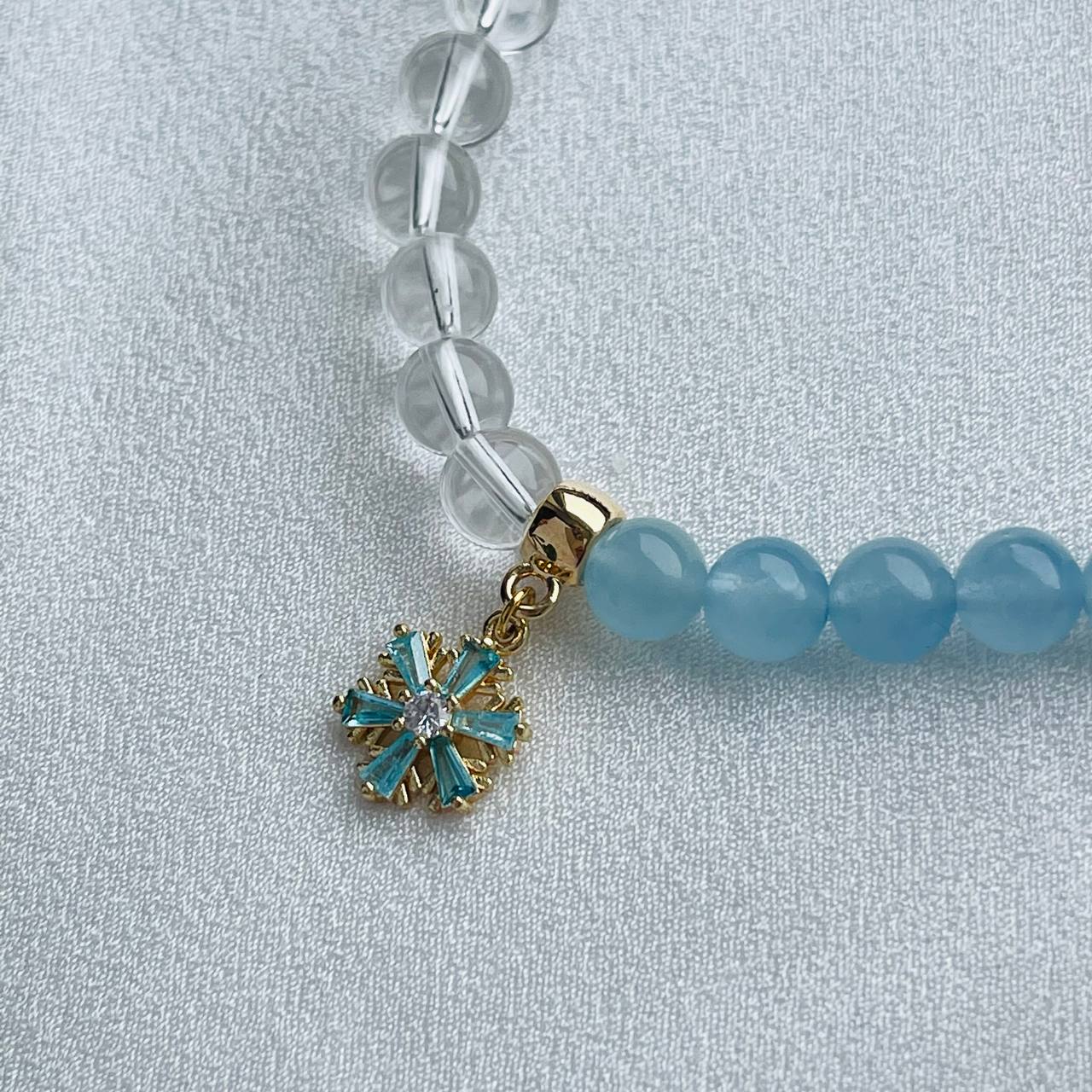 Браслет с подвеской "Снежинка" из Аквамарина и Горного Хрусталя