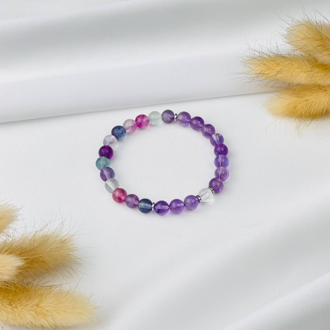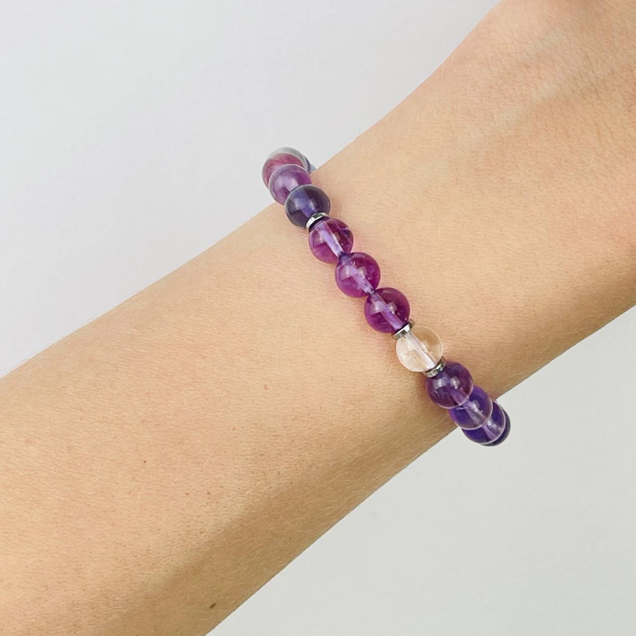 Браслет "Стихия Эфир" из Аметиста, Флюорита и Горного Хрусталя