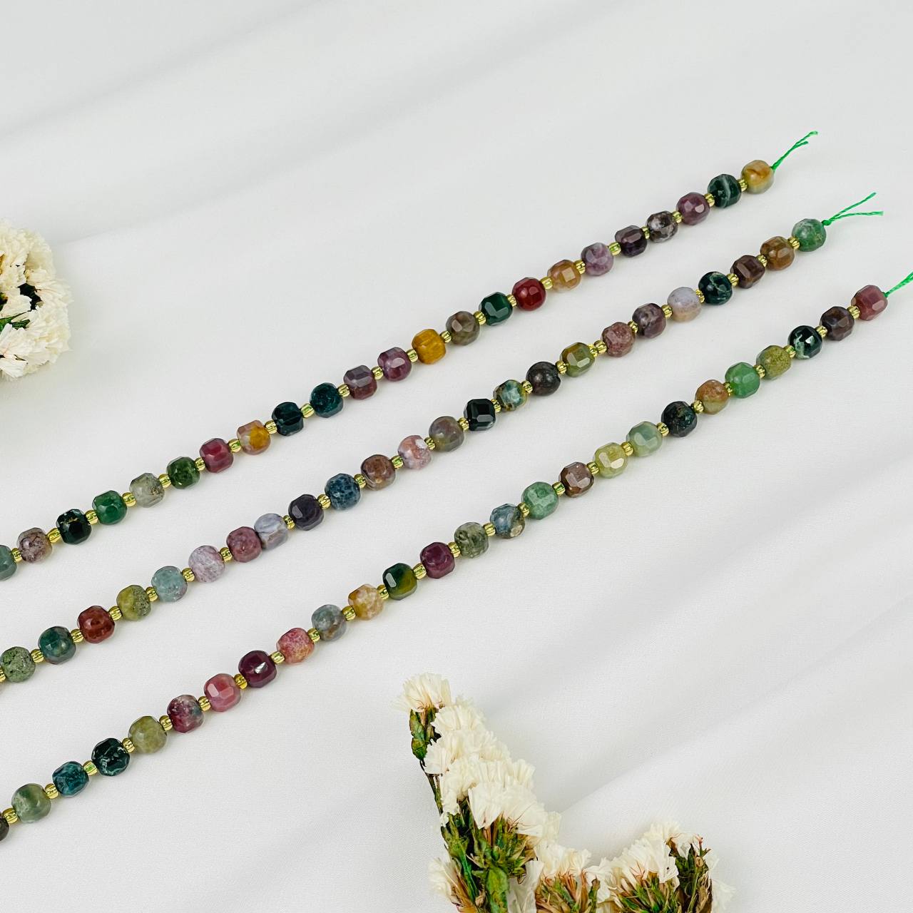 Бусины для украшений из Мохового агата (40 бусин)