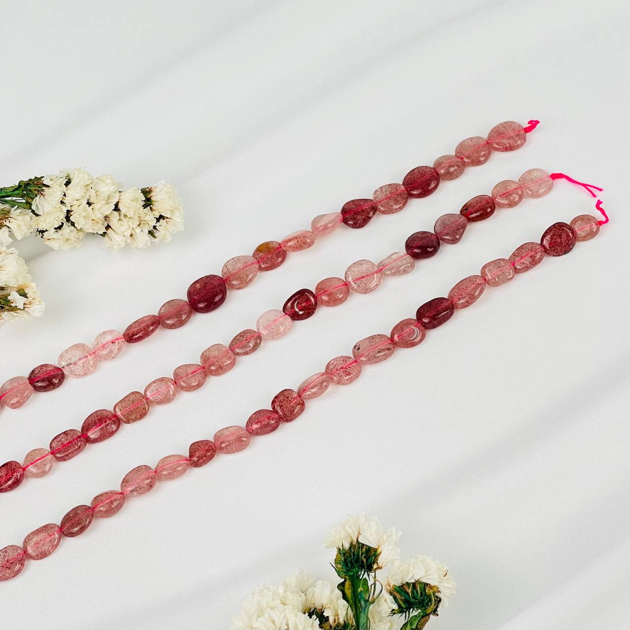 Бусины для украшений из Клубничного кварца (галтовка)