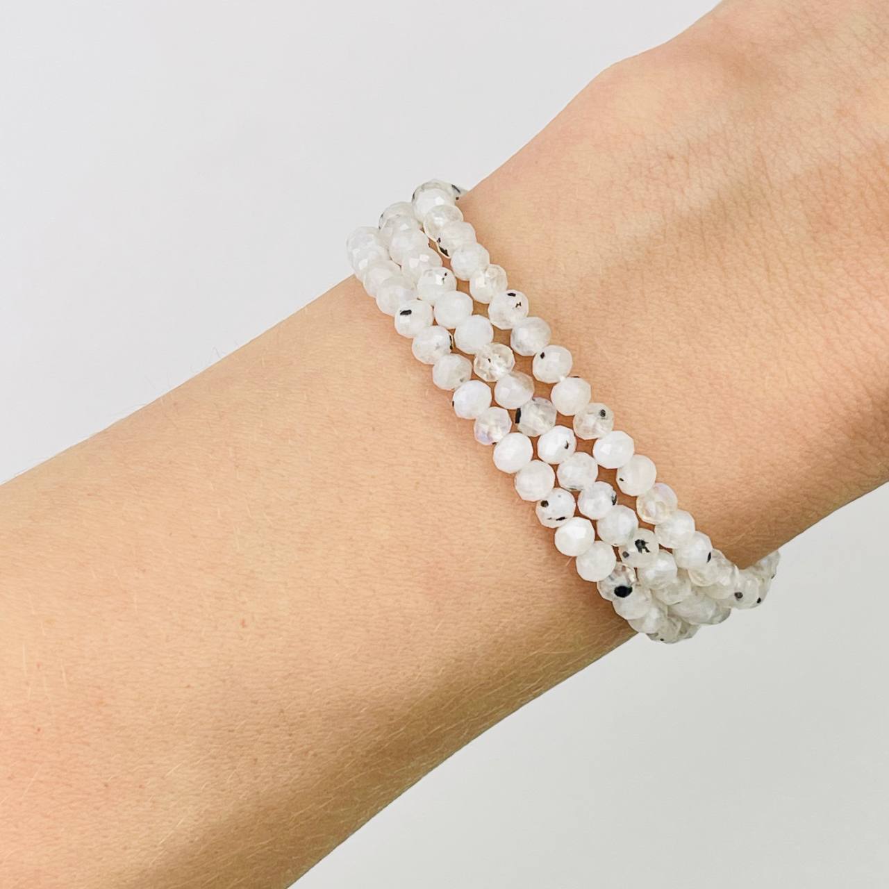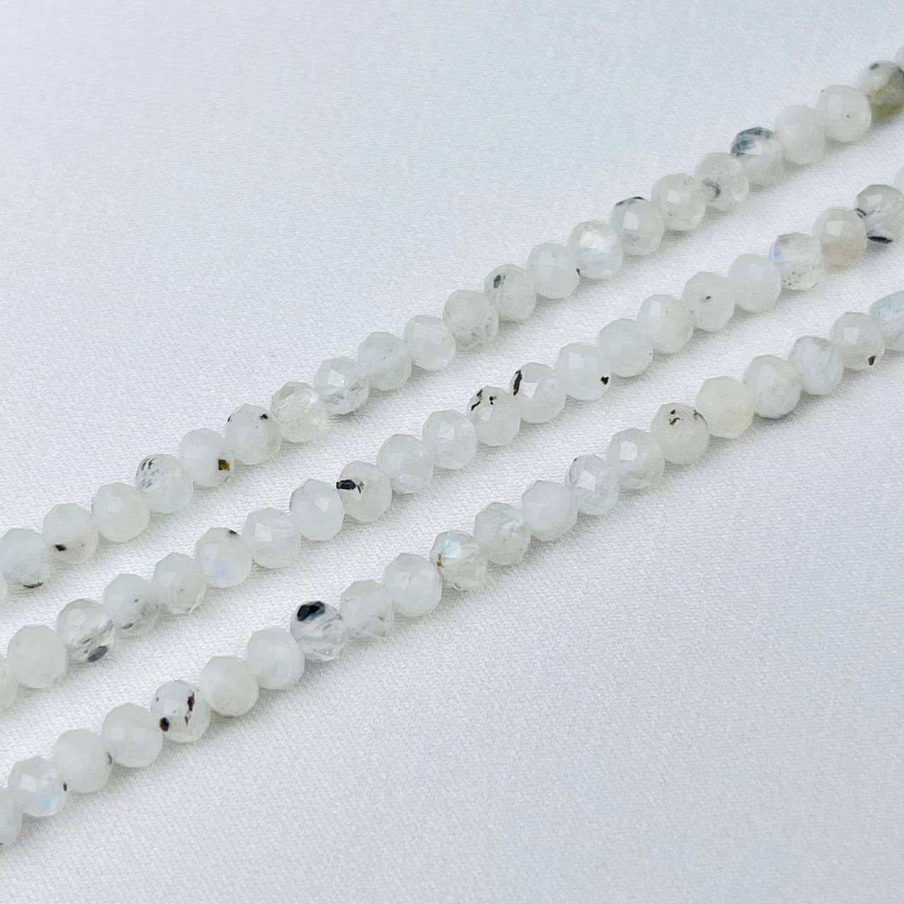 Бусины для рукоделия из Лунного камня с включением Турмалина (130 бусин)