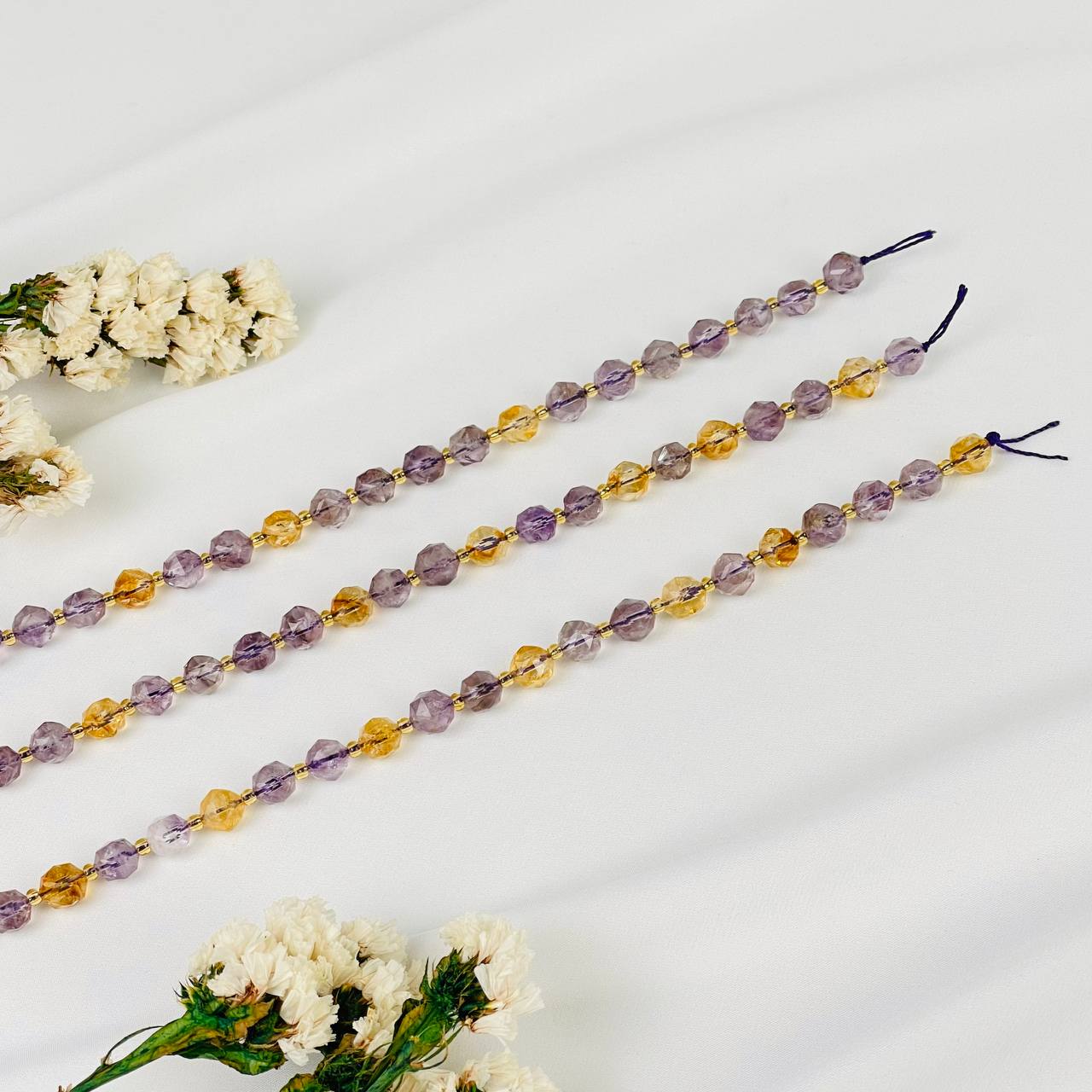 Бусины для украшений из лавандового Аметиста и Цитрина (38 бусин)