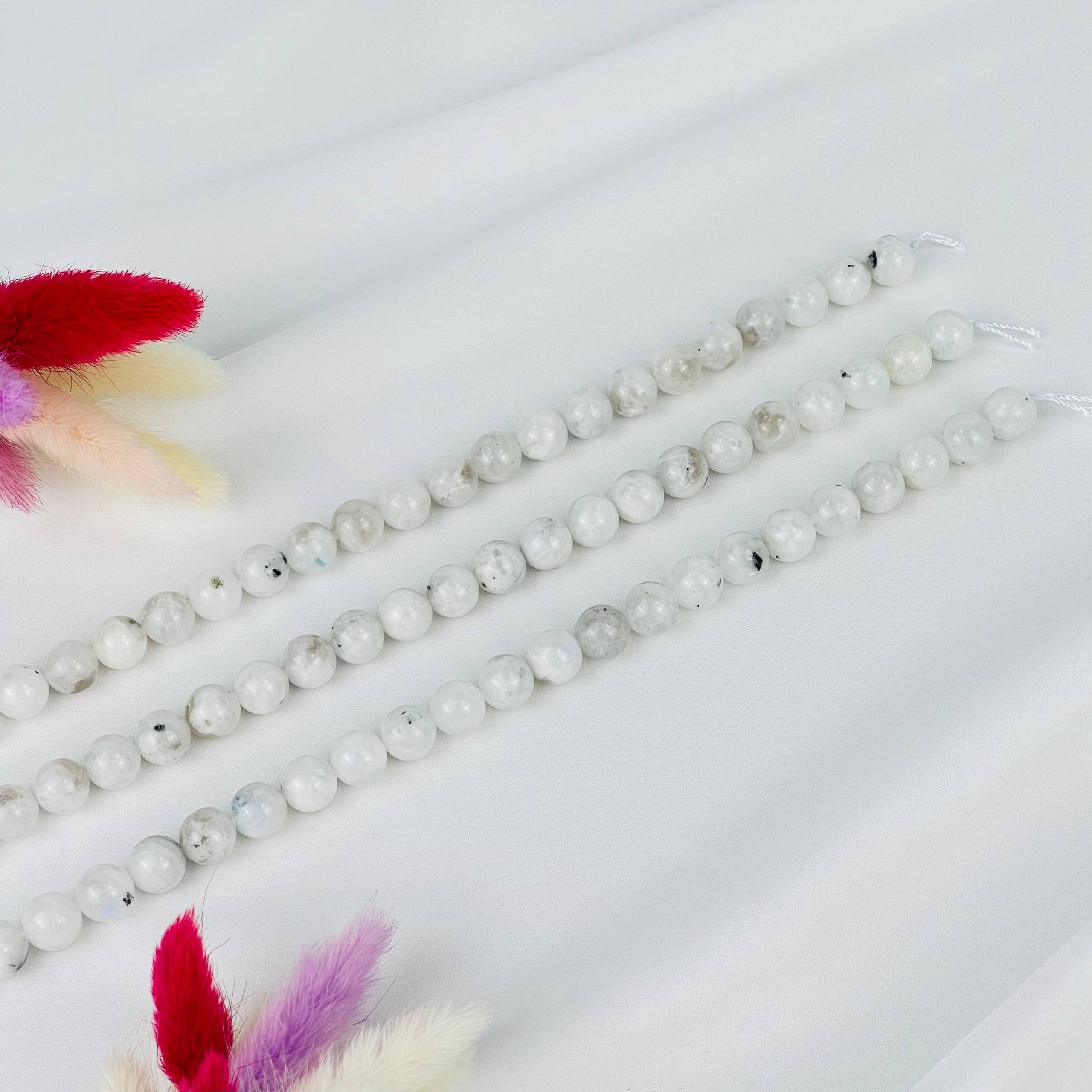 Бусины для украшений из Лунного камня с включением Турмалина(38 бусин)