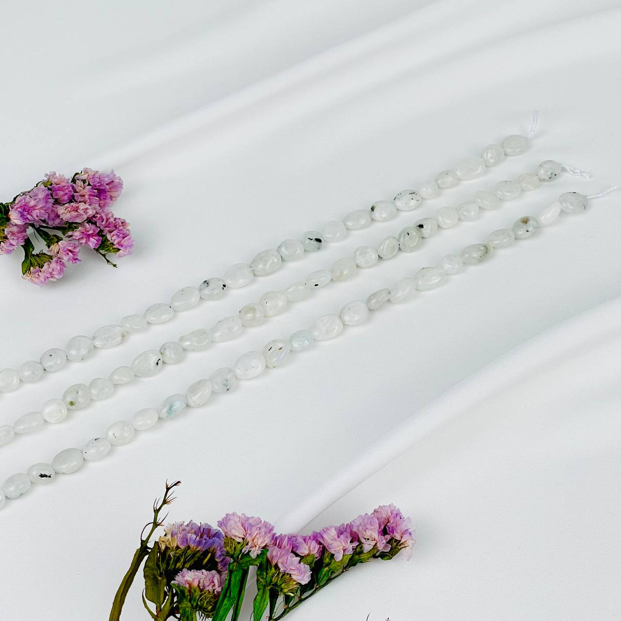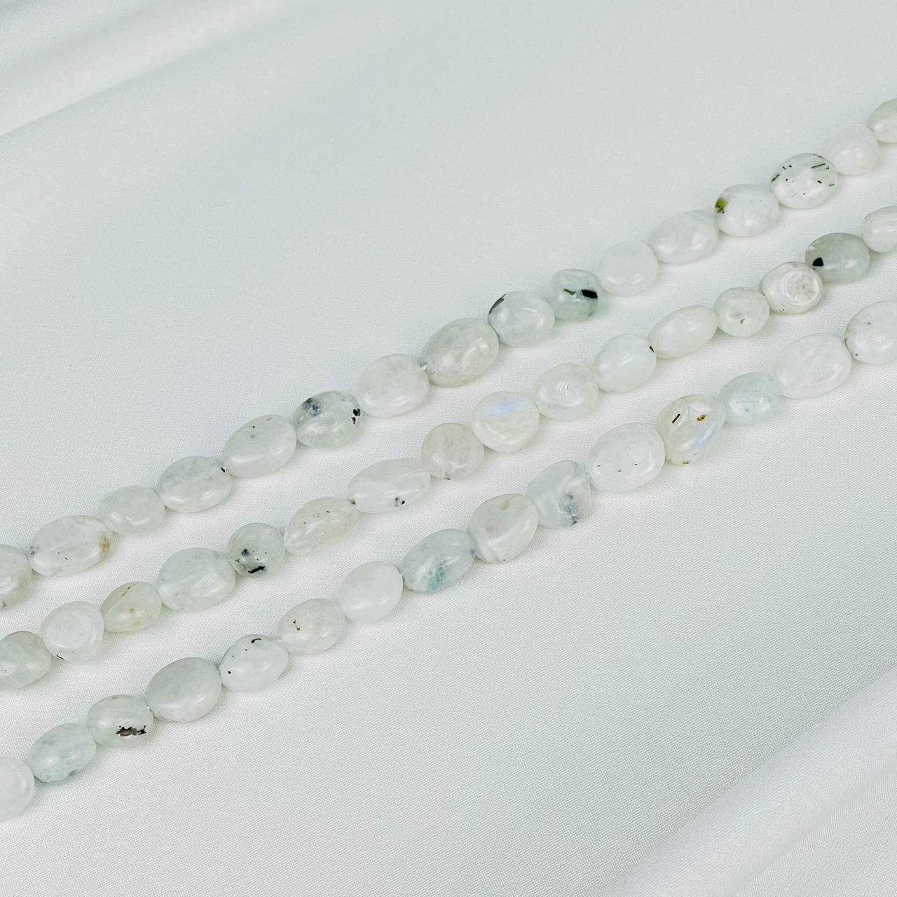 Бусины для украшений из Лунного камня с вкл. Турмалина (галтовка)