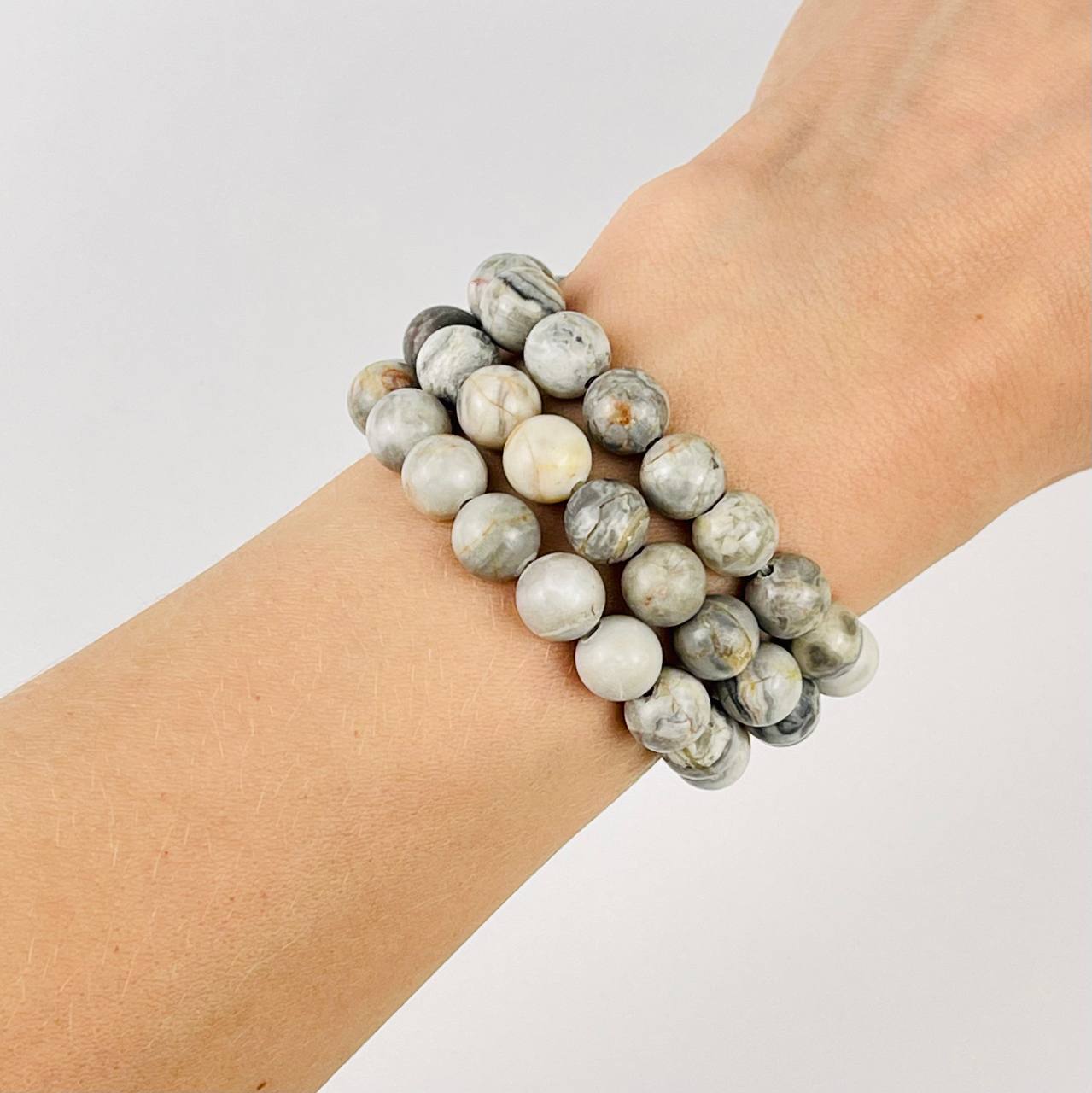 Бусины для украшений из серой Яшмы(Map Jasper) (46 бусин)