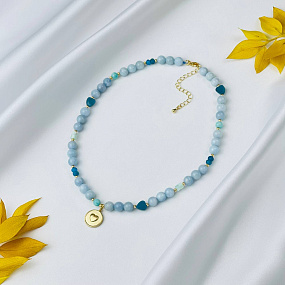 Колье из Аквамарина, Апатита и Ларимара, 38 см + – 42 см +, 4-8 мм, гладкий, Бразилия