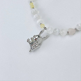 Колье из Лунного камня и Жемчуга с перламутровой подвеской, 39 см + – 43 см +, 4 мм, гладкий/Необработанный, Индия