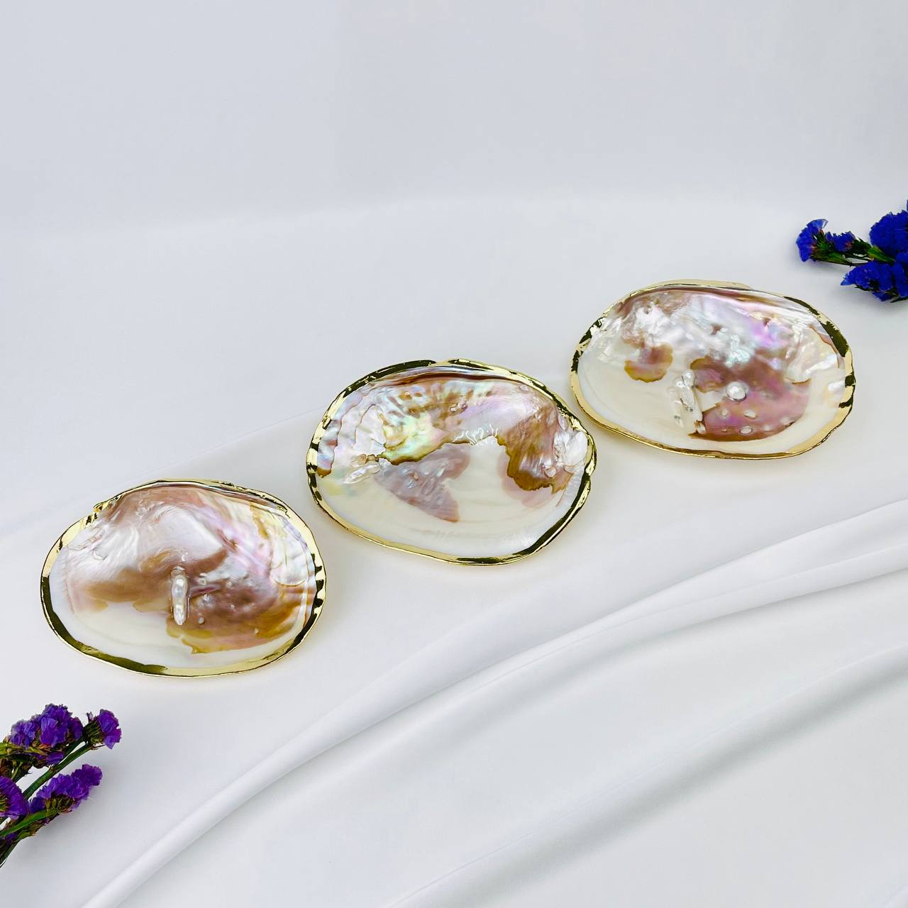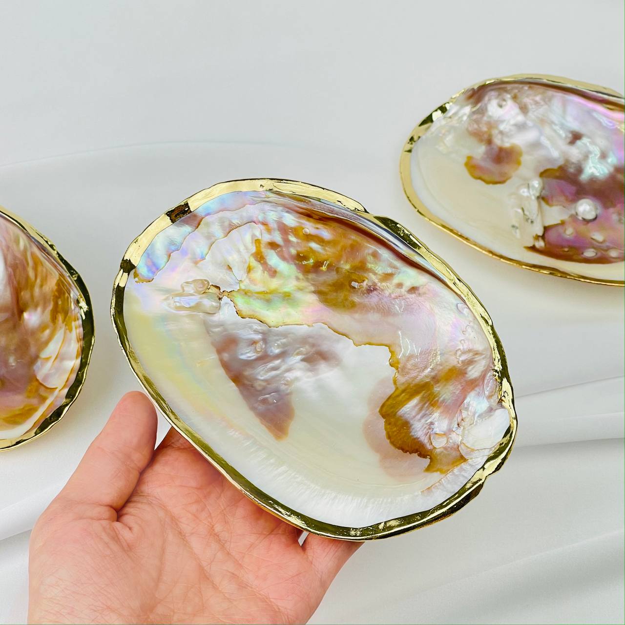 Чаша для окуривания Абалон с Жемчугом в золотой оправе