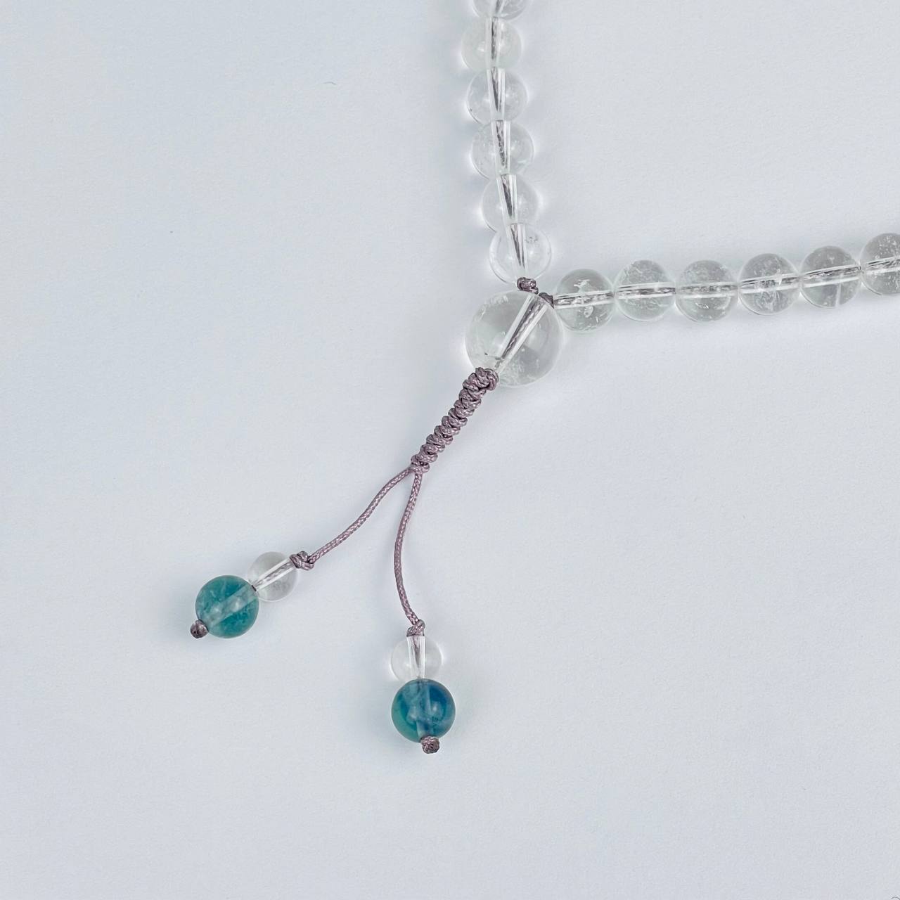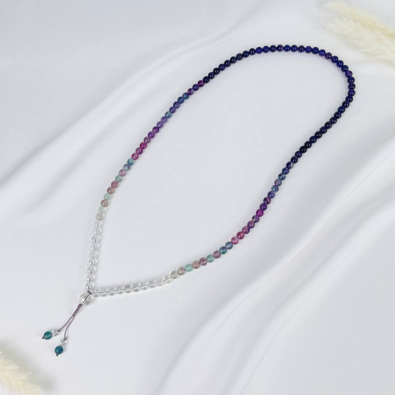 Четки буддийские (Мала) из Флюорита, Аметиста и Горного Хрусталя (108 бусин)