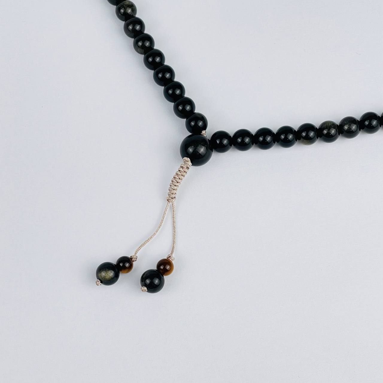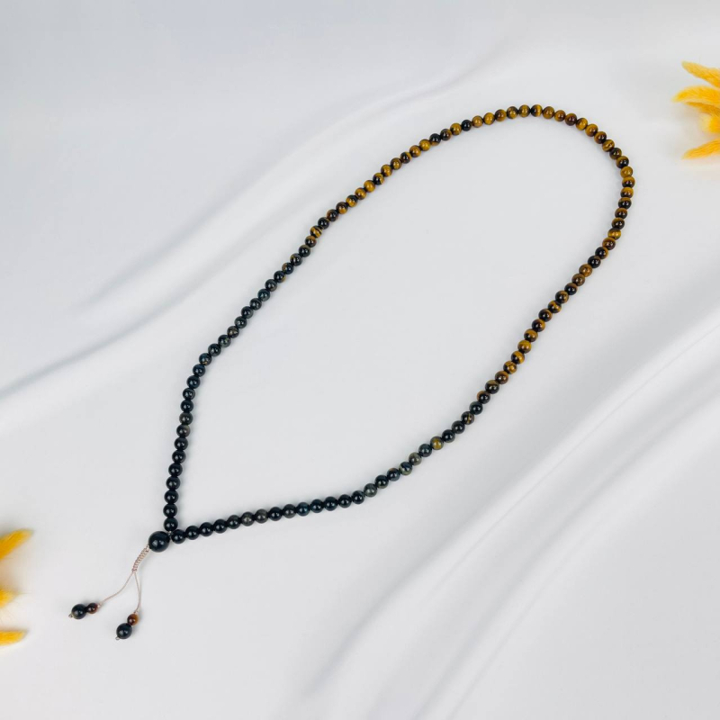 Четки буддийские (Мала) из Обсидиана, Тигрово-Соколиного и Тигрового глаза(108 бусин)