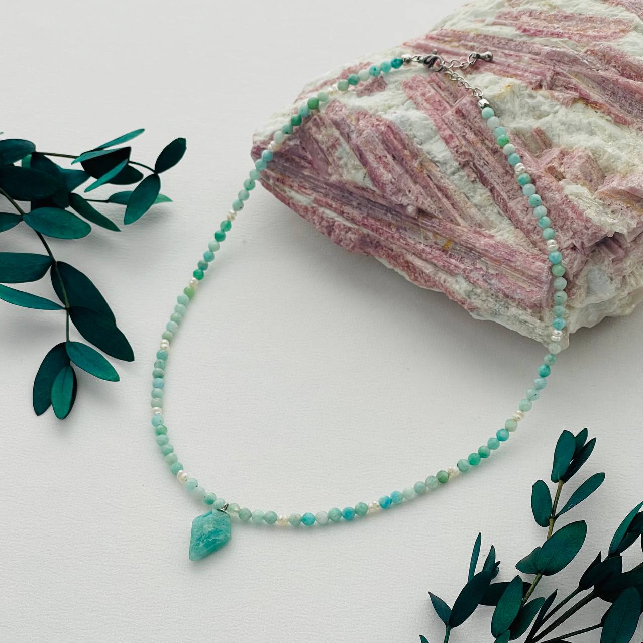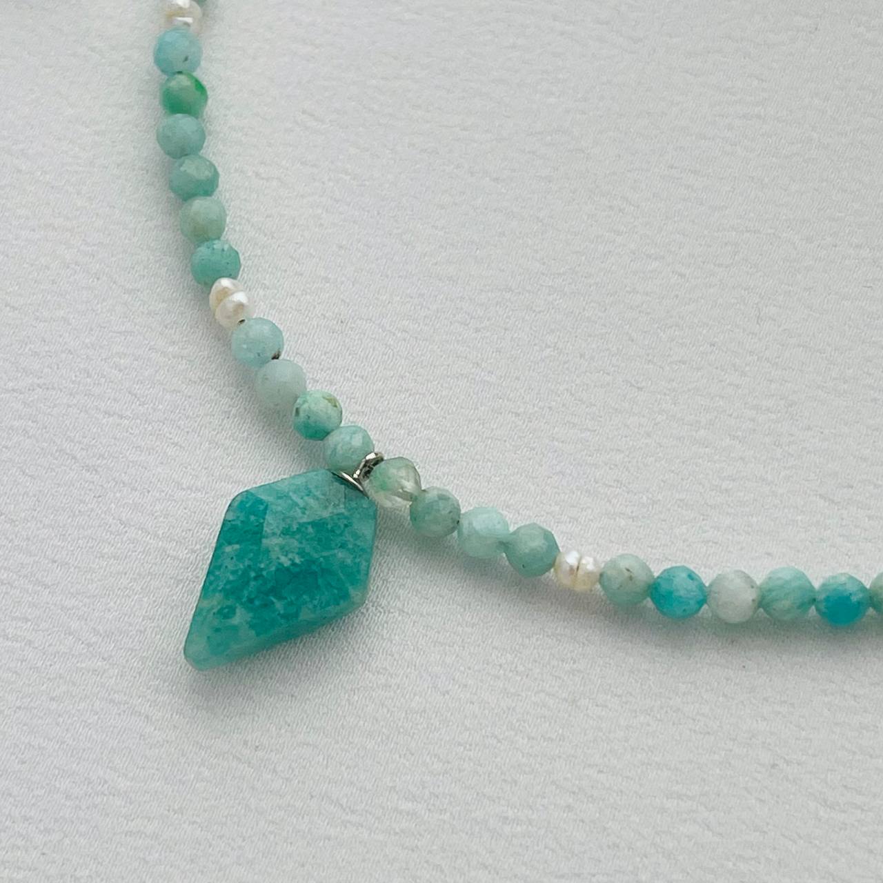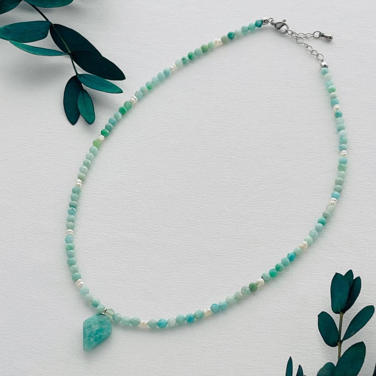 Чокер с кулоном из Амазонита и Жемчуга