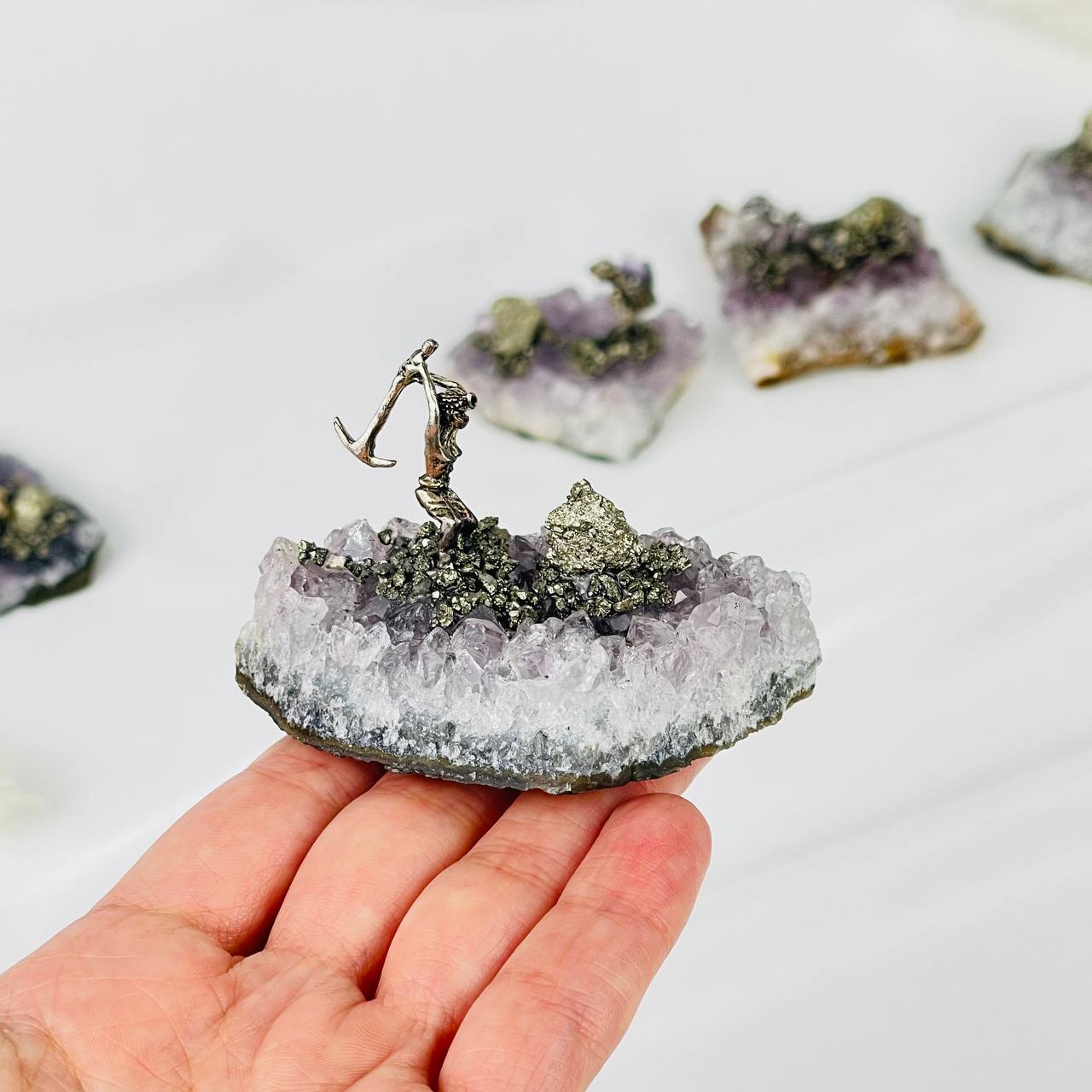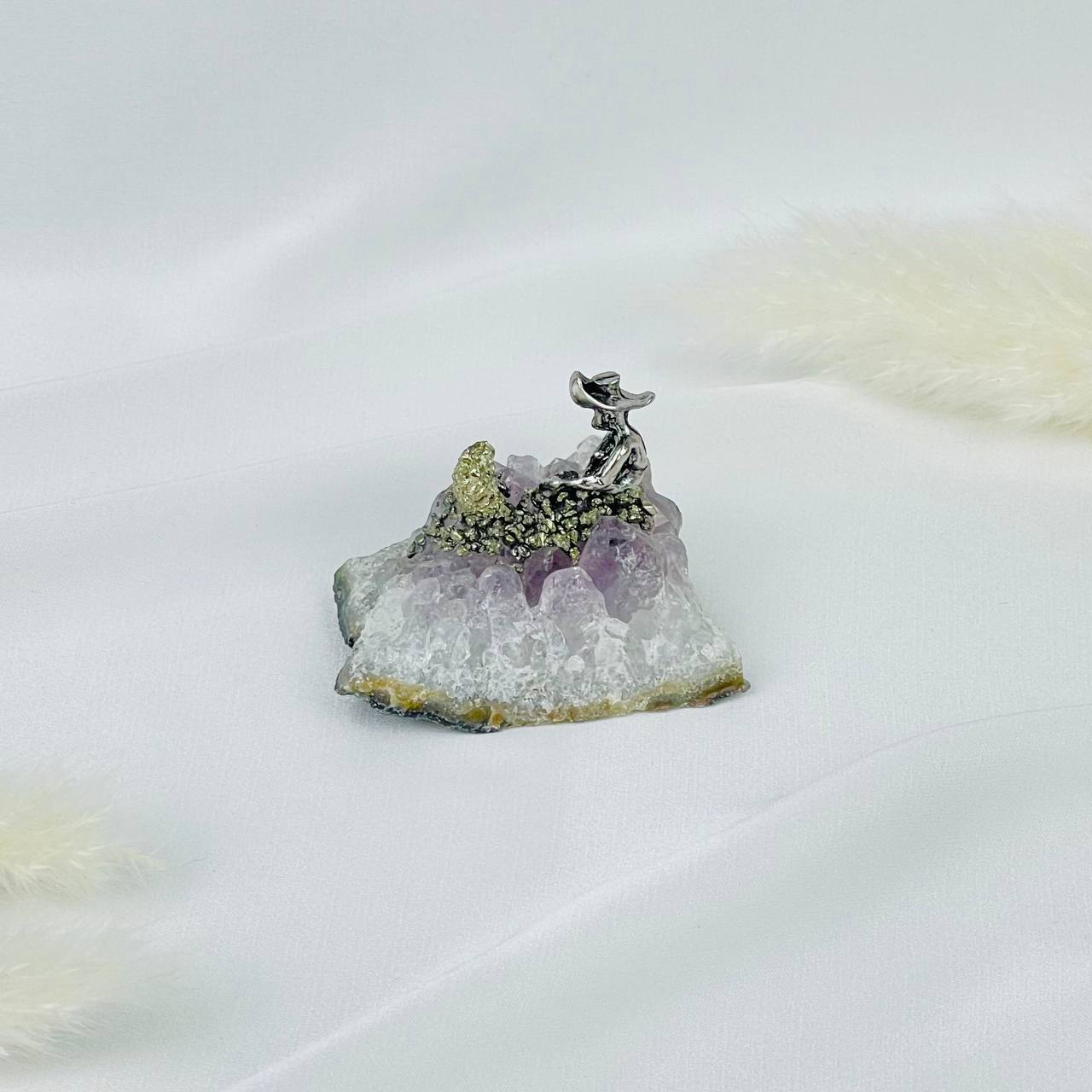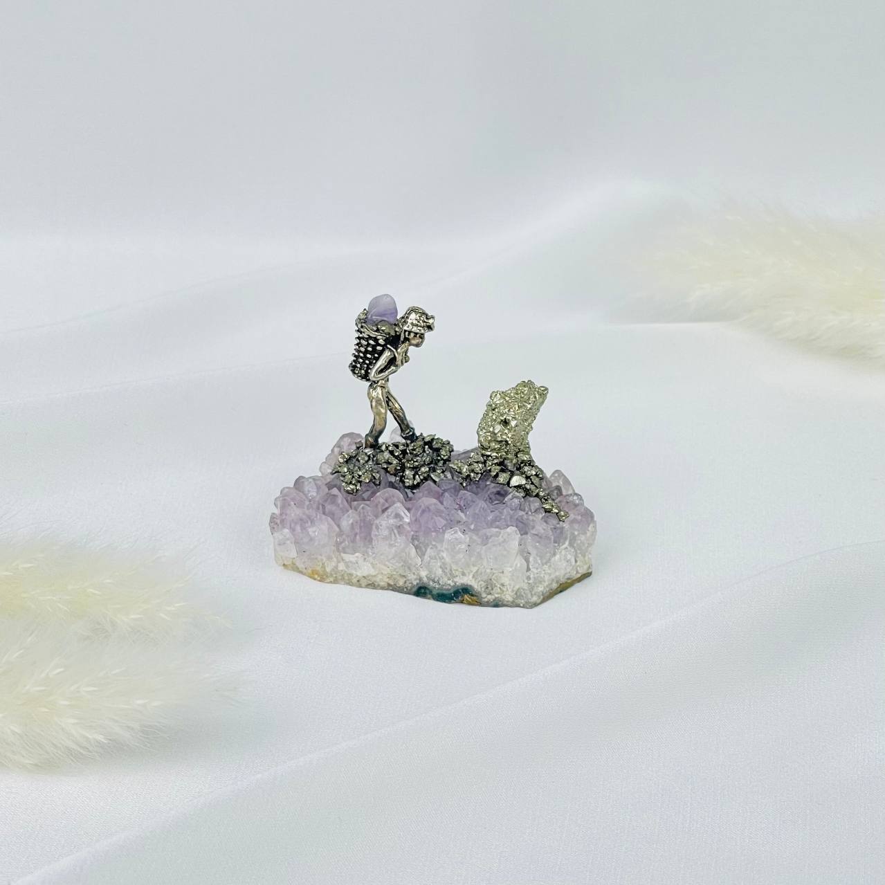 Фигурка Старатель на друзе Аметиста с Пиритом