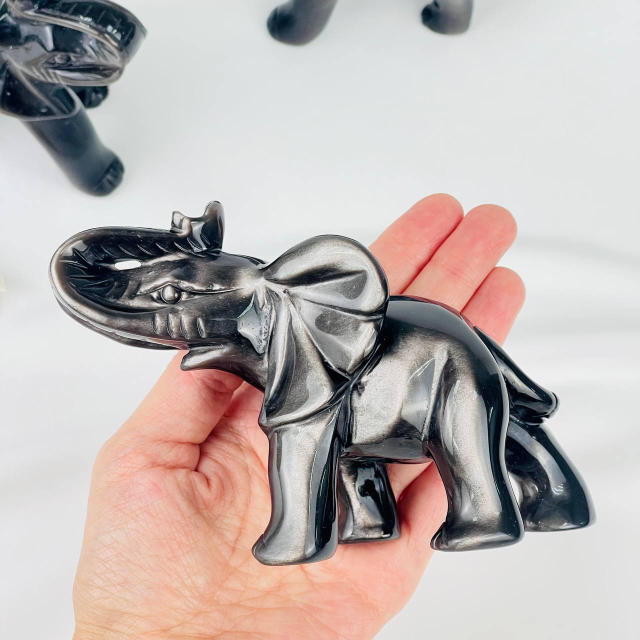 Фигурка Слон из серебристого Обсидиана