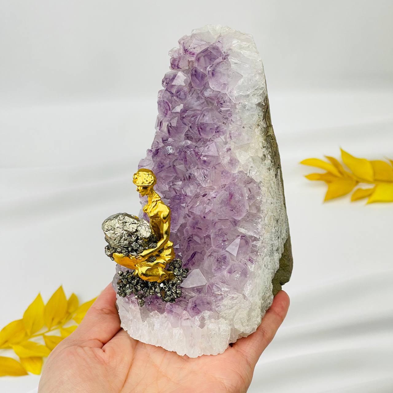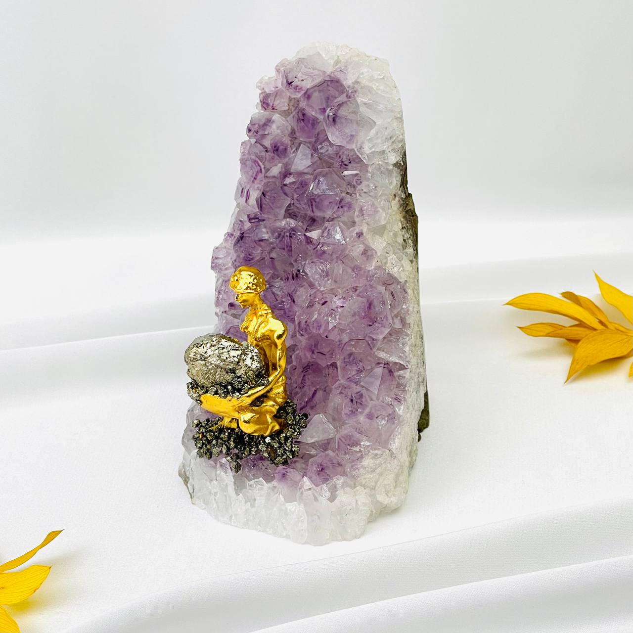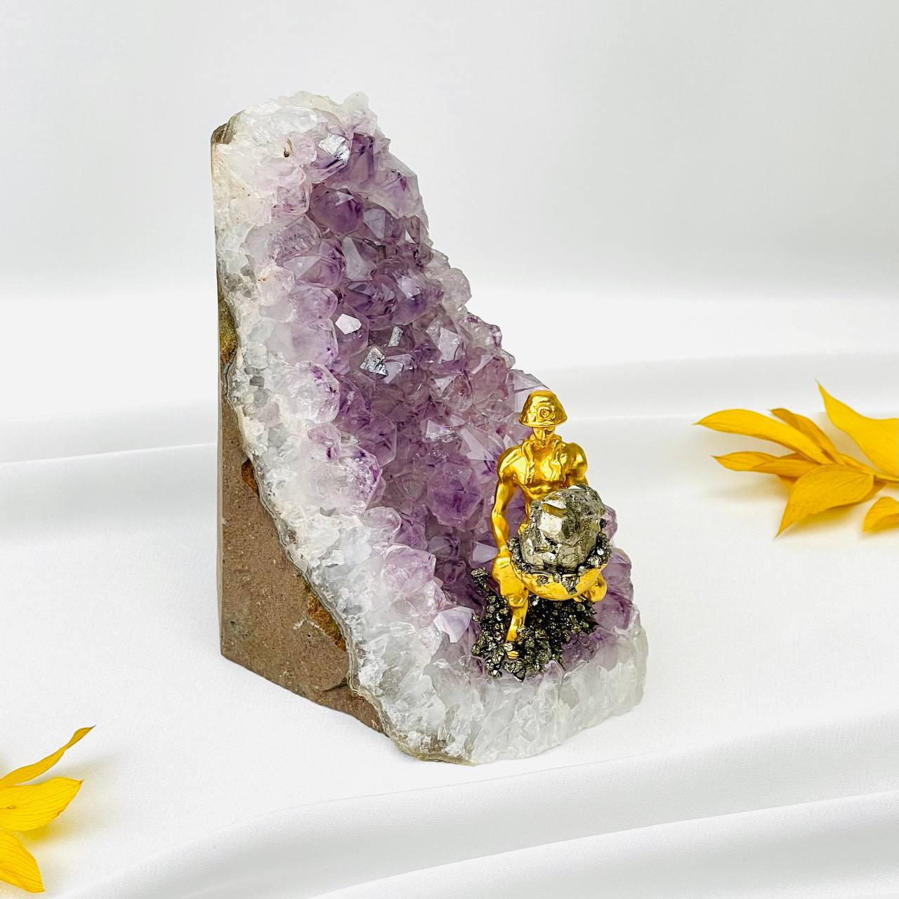 Фигурка Старатель с Пиритом на жеоде из Аметиста