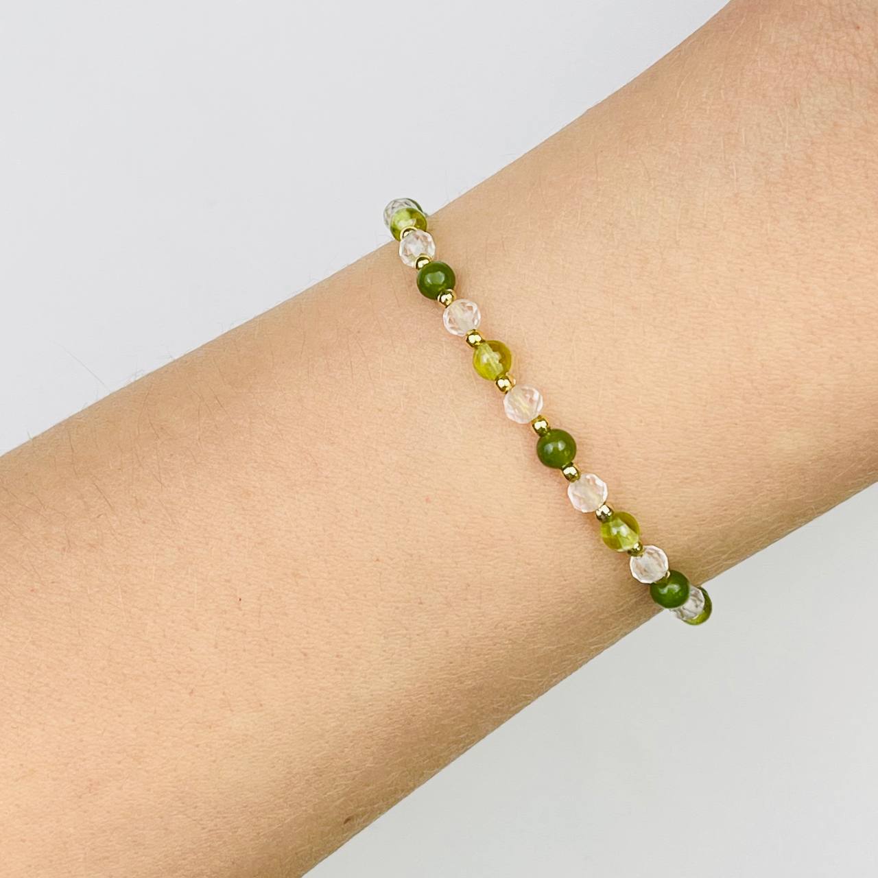 Колье для "Девы" из Хризолита,Нефрита и Горного Хрусталя