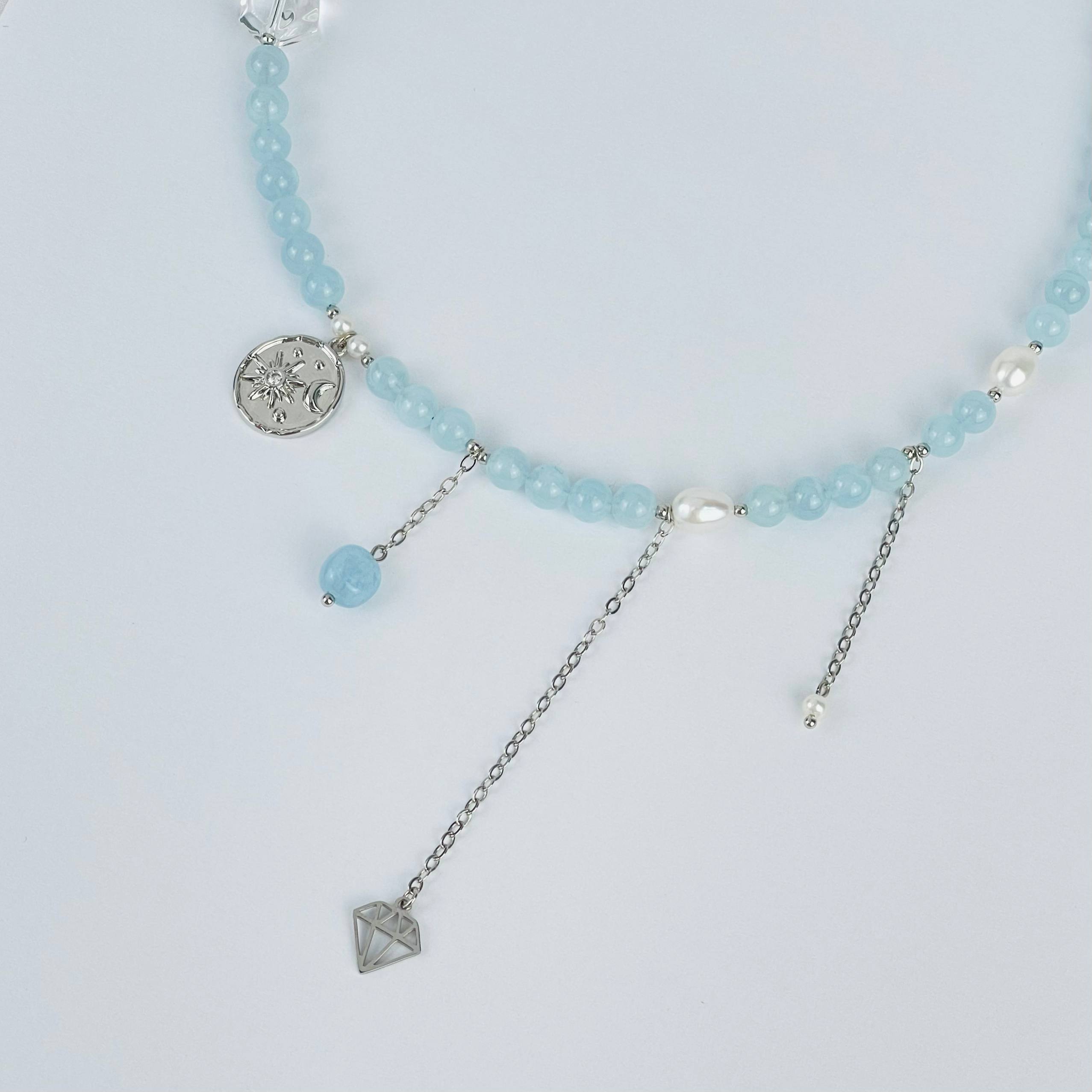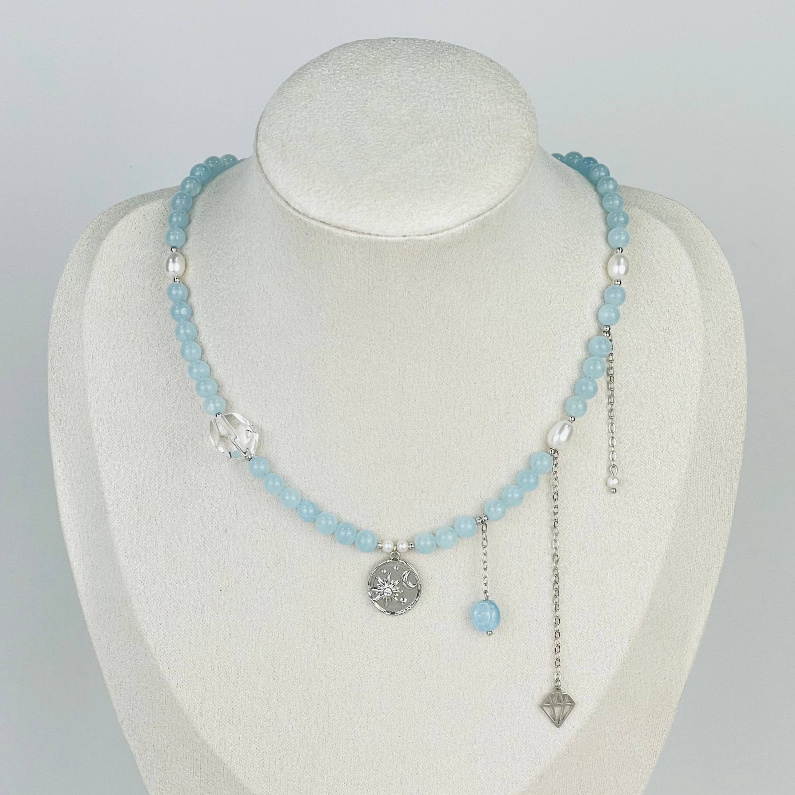 Колье из Аквамарина, Жемчуга и Горного Хрусталя
