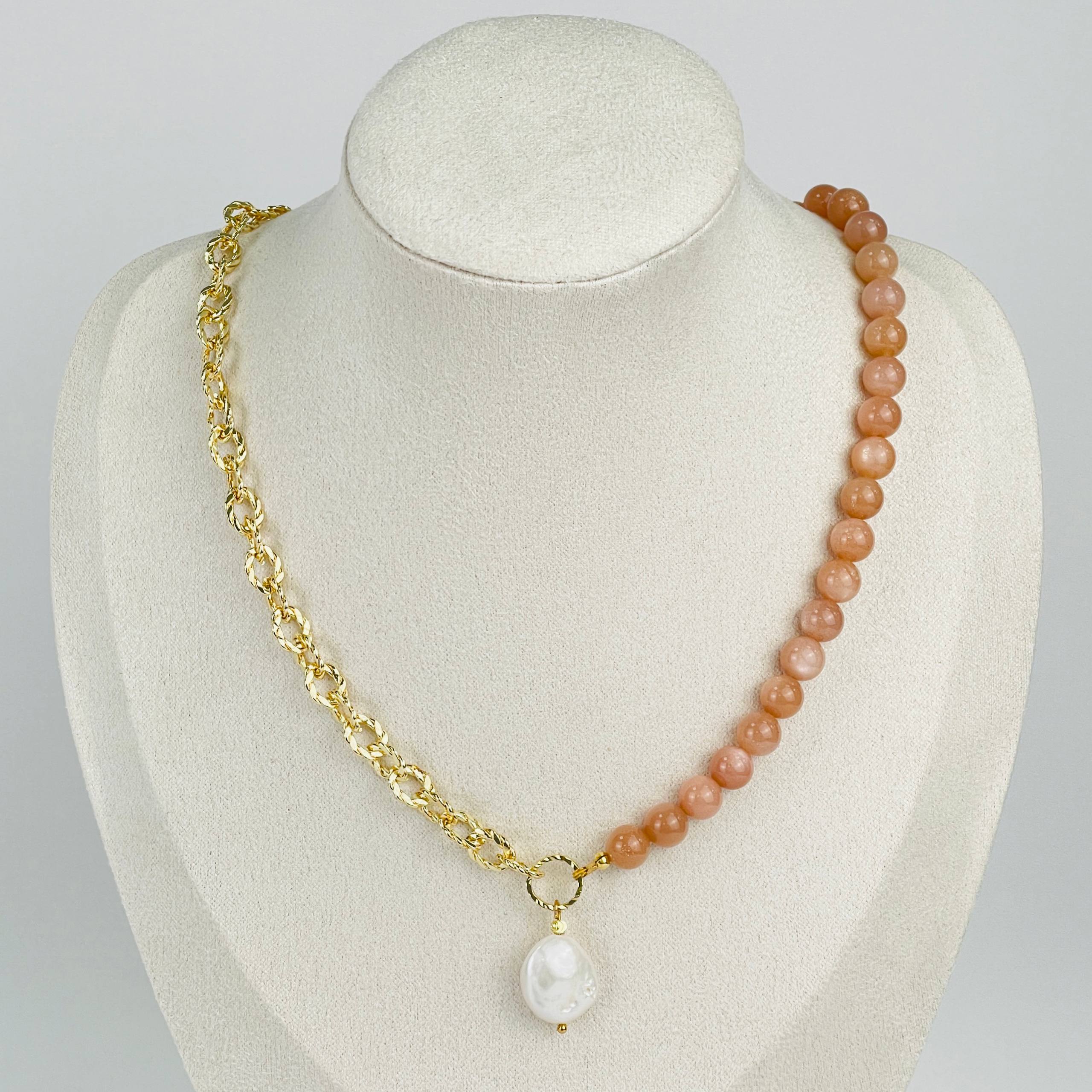 Колье из Лунного камня с кулоном из Жемчуга