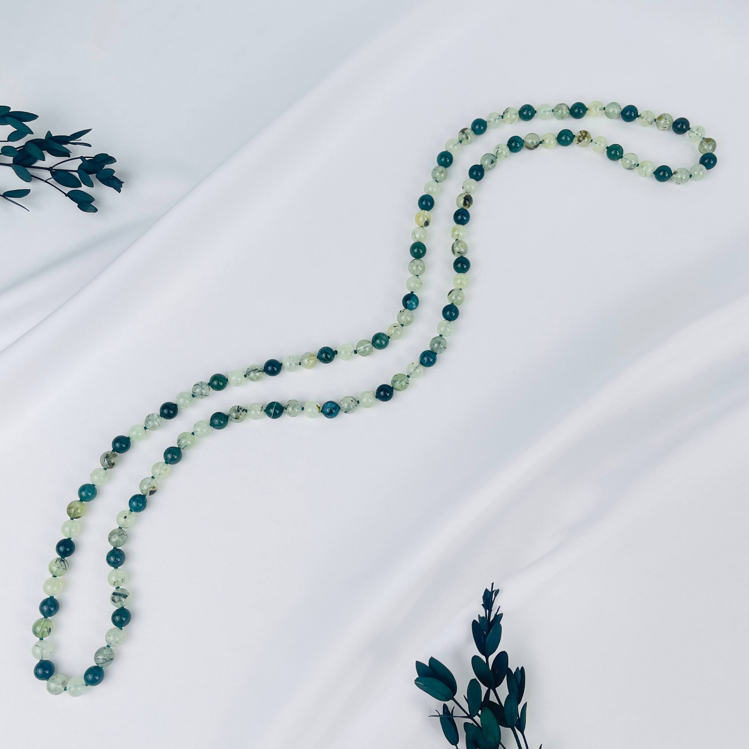 Колье из Пренита и Мохового агата