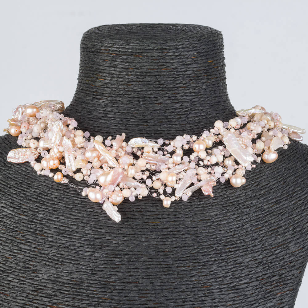 Колье "Воздушное" из Жемчуга и Розового кварца