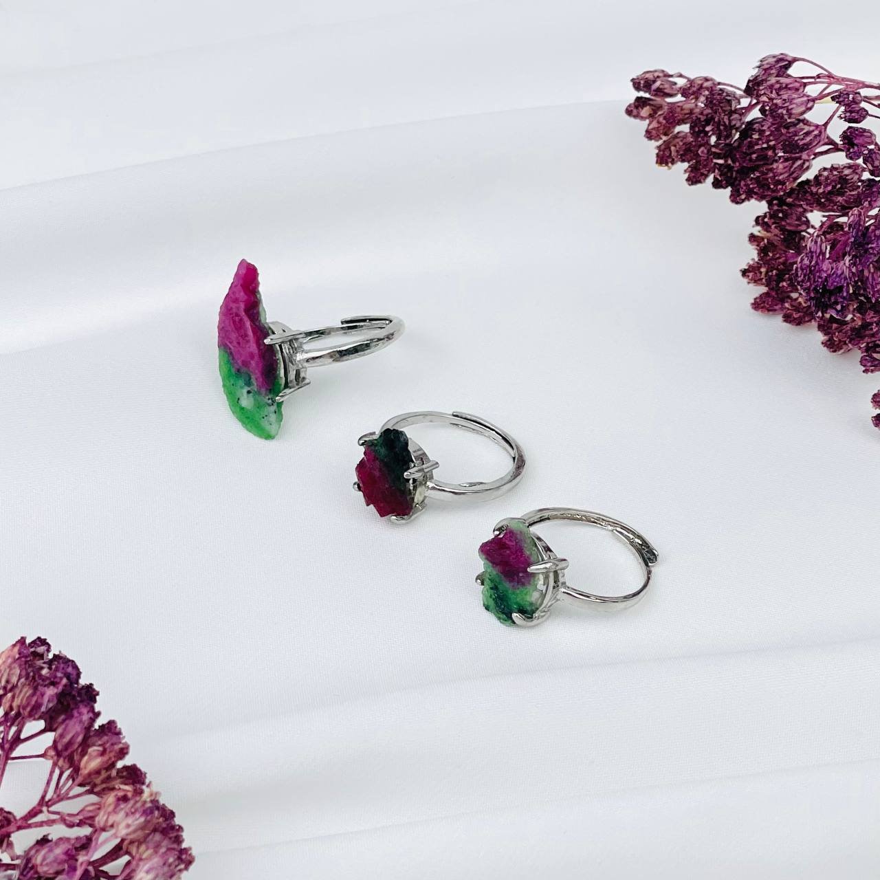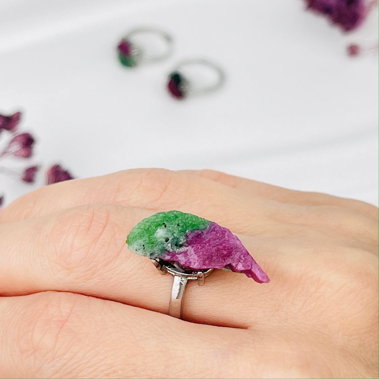 Кольцо регулируемое из необработанного Рубина в Цоизите